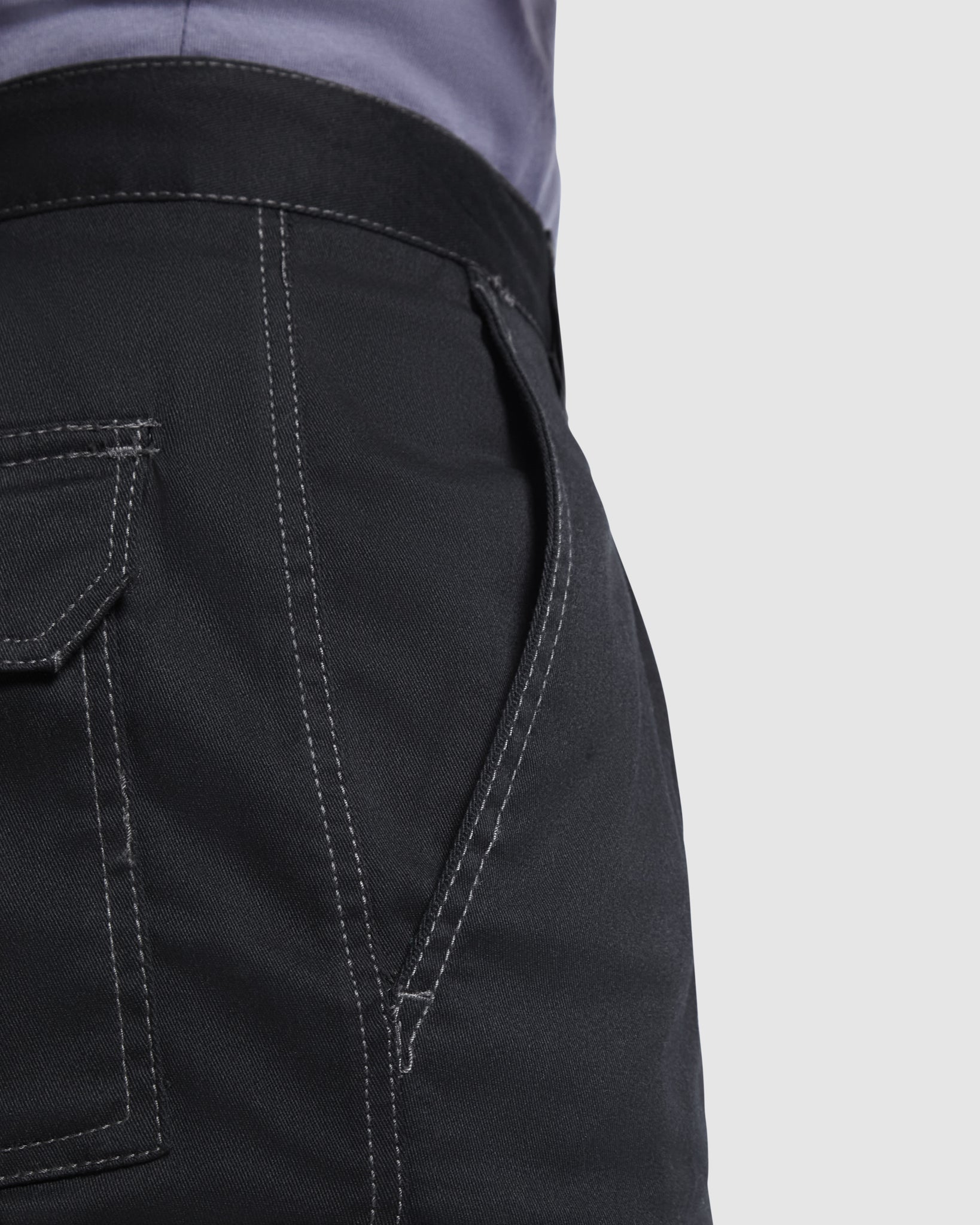 Pantalón corto con bolsillos. · Cintura ajustable elástica en la parte trasera. · Dos bolsillos frontales. · Dos bolsillos laterales con tapeta, cierre velcro y fuelle central. · Dos bolsillos traseros con tapeta y cierre de velcro.