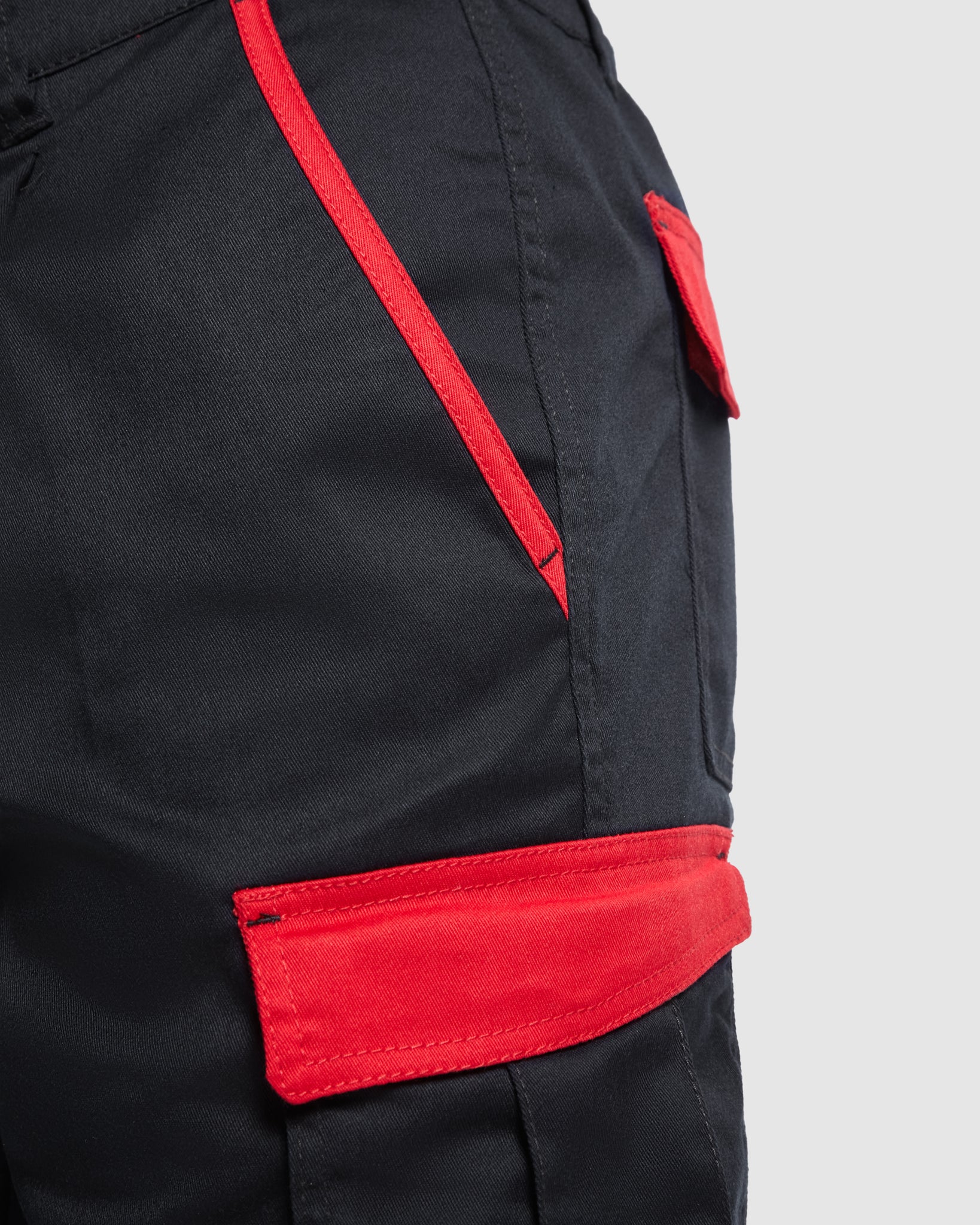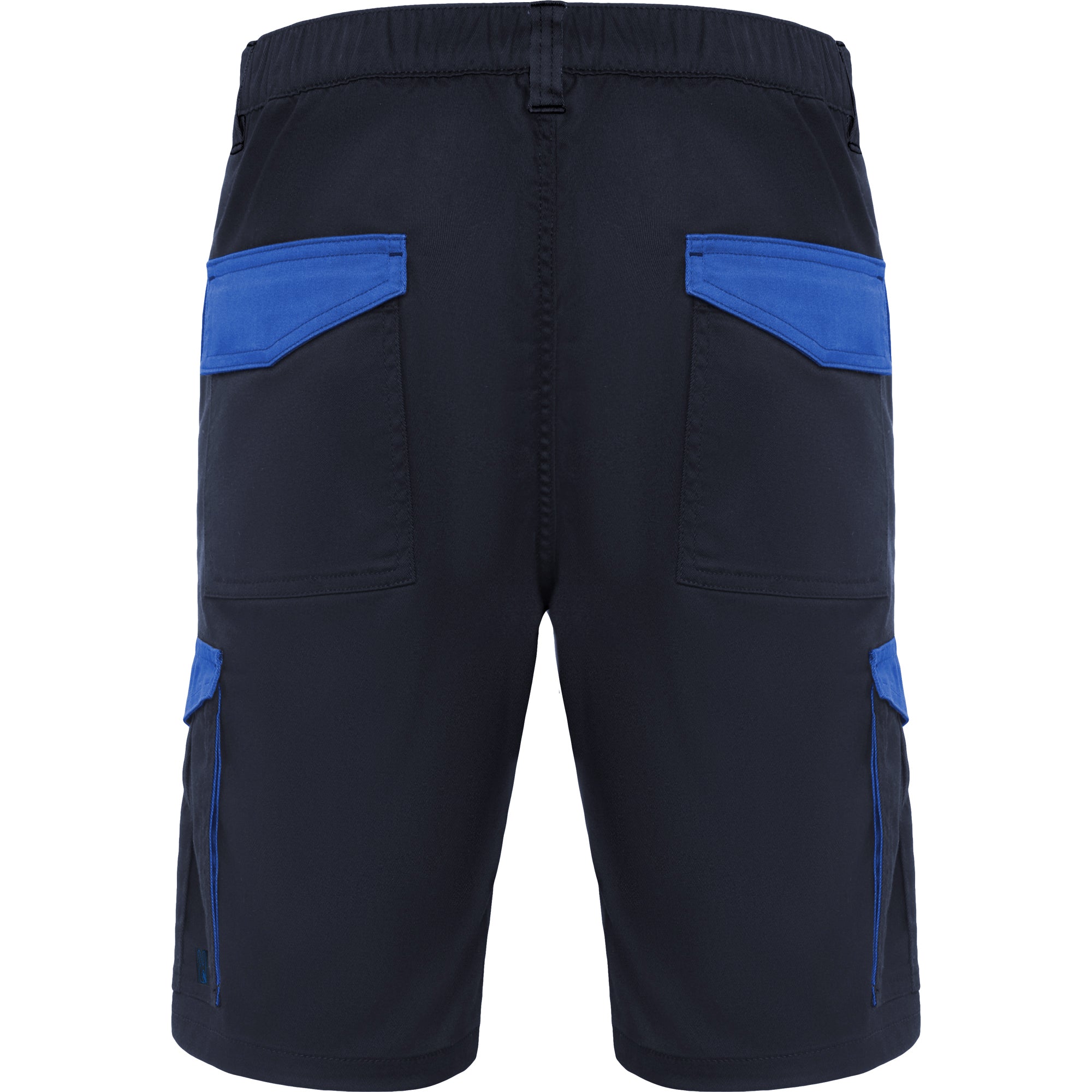 Pantalón corto en colores combinados. · Tejido cómodo y flexible. · Cintura ajustable elástica en parte trasera. · Trabillas, solapas, fuelles y vivos a contraste. · Dos bolsillos frontales. · Dos bolsillos traseros con solapa y cierre velcro. · Dos bolsillos laterales de fuelle con solapa y cierre velcro.