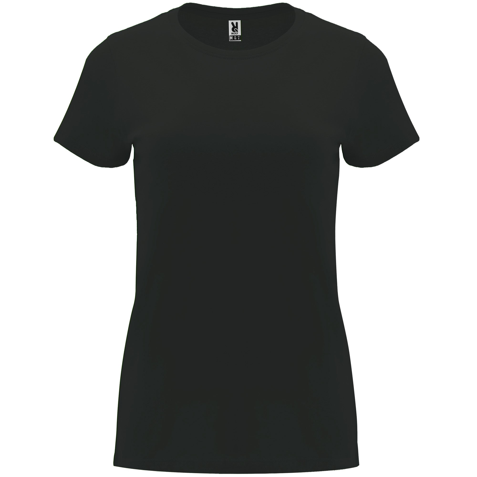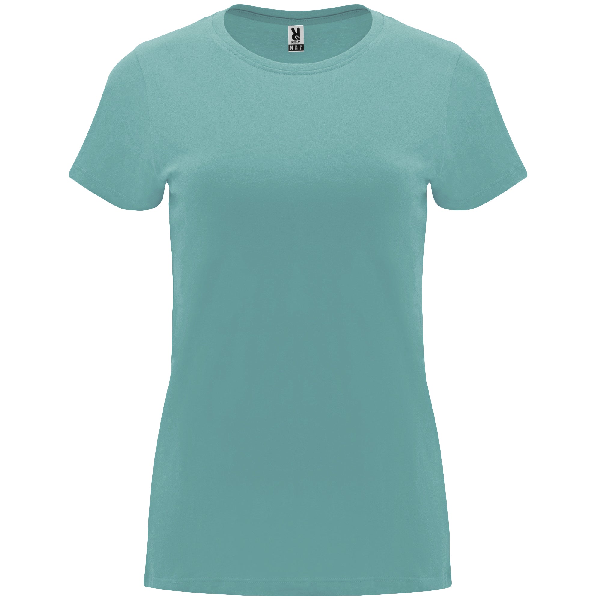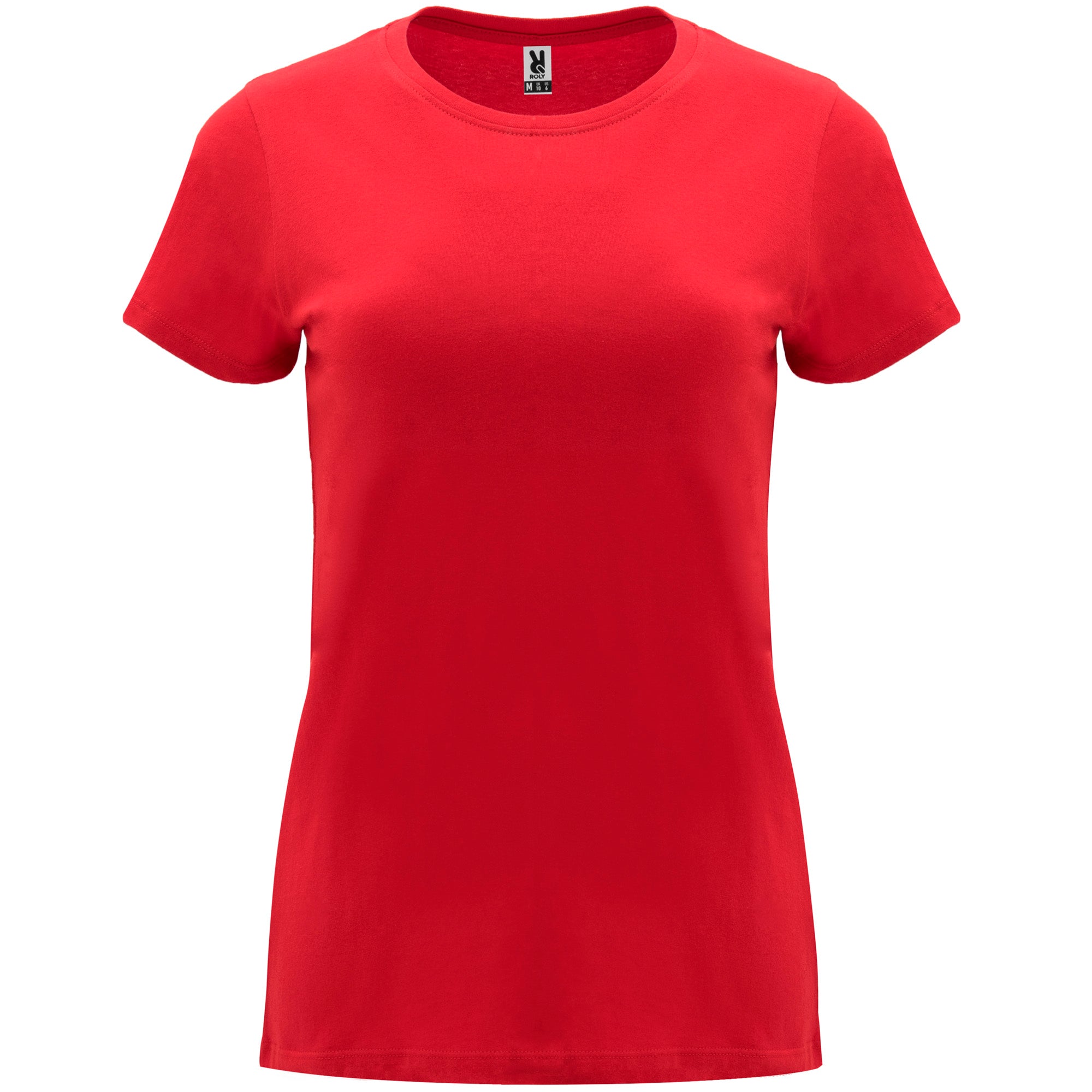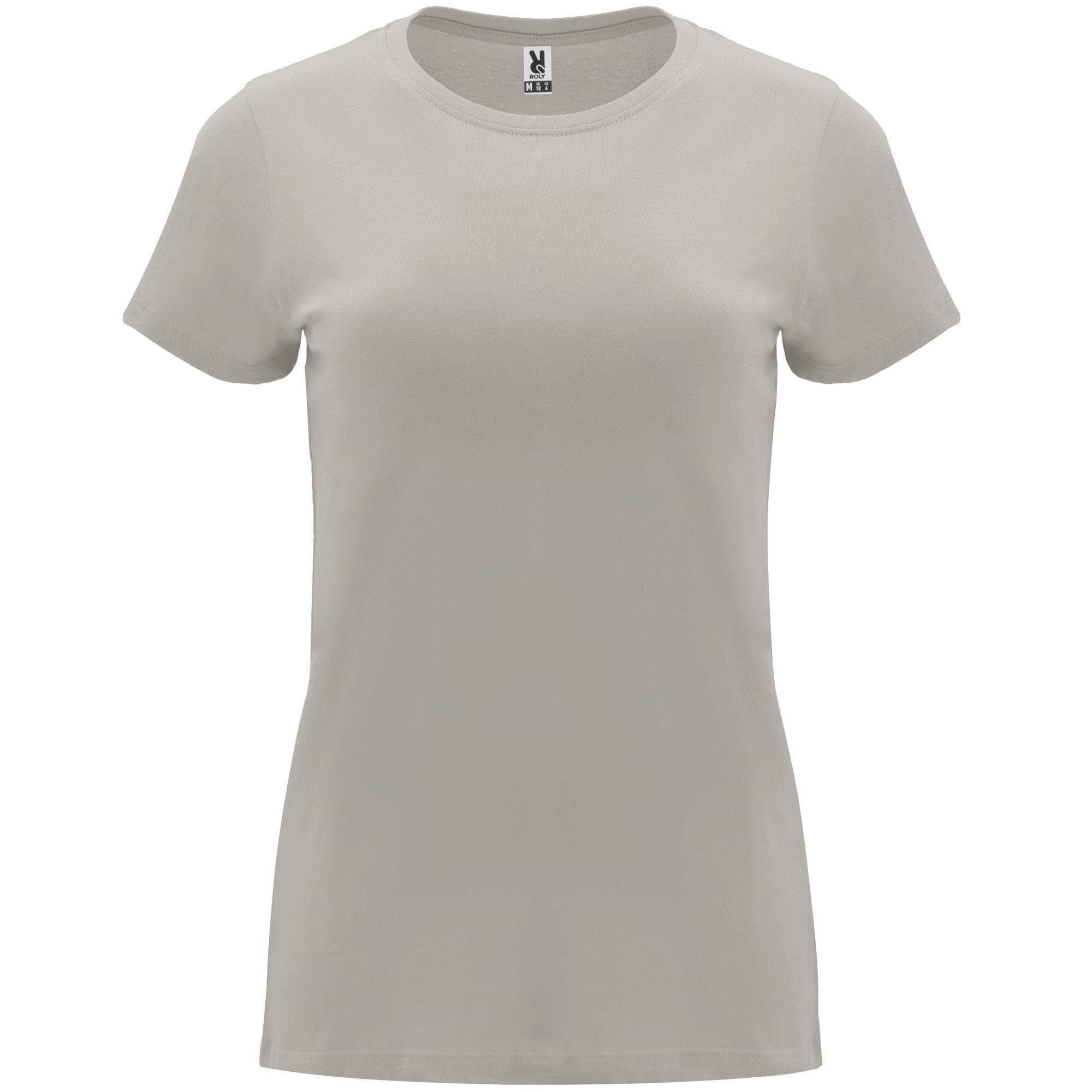Camiseta de manga corta entallada para mujer. Cuello redondo en canalé 1x1. Cubrecosturas reforzado en cuello.