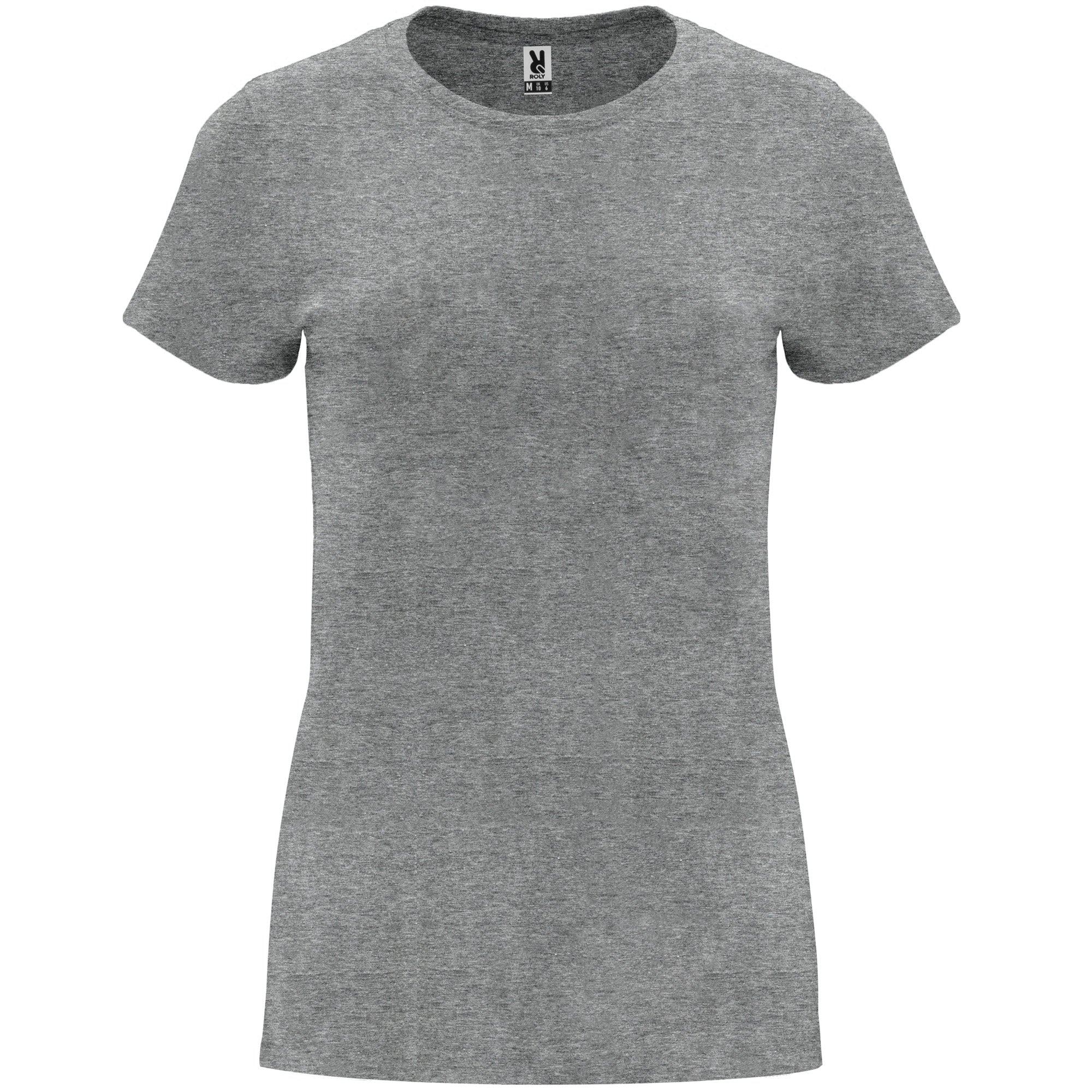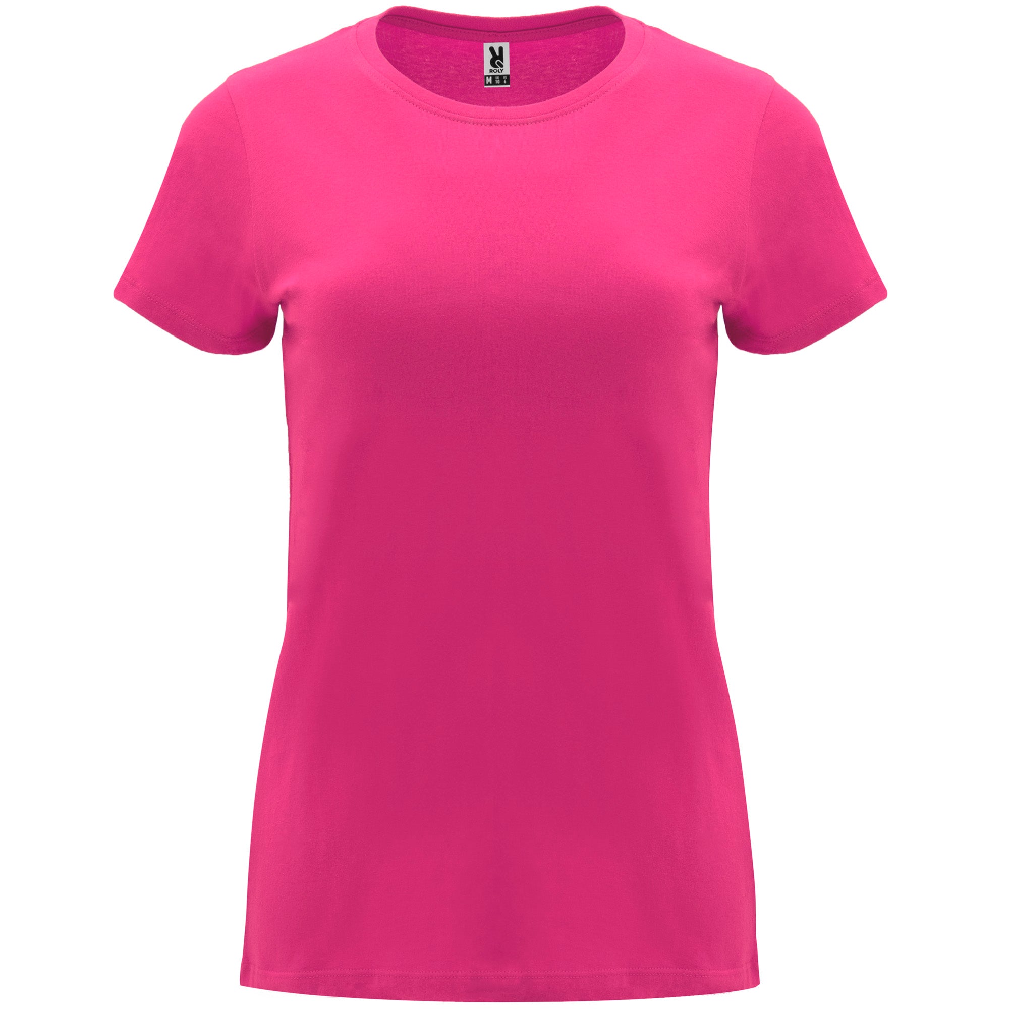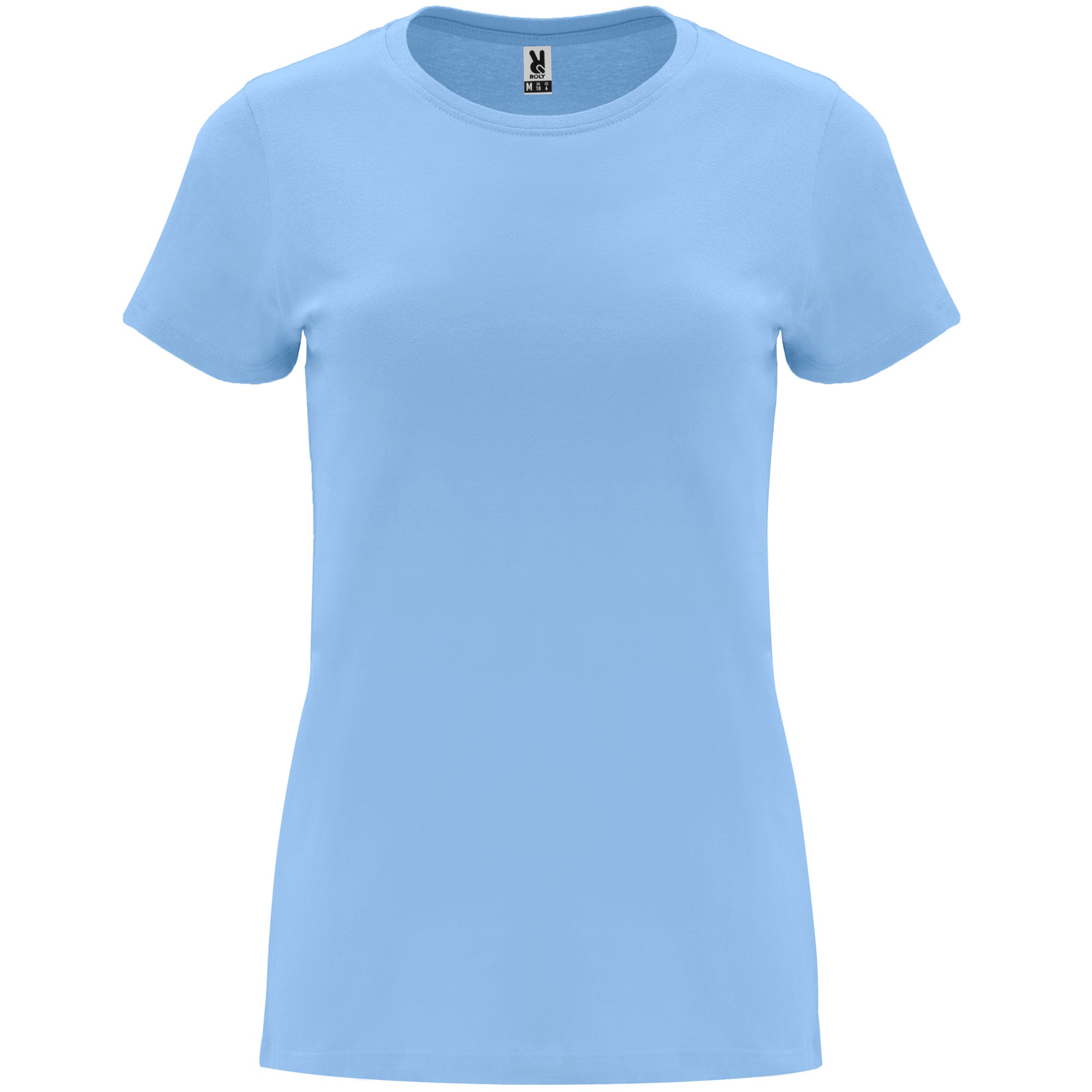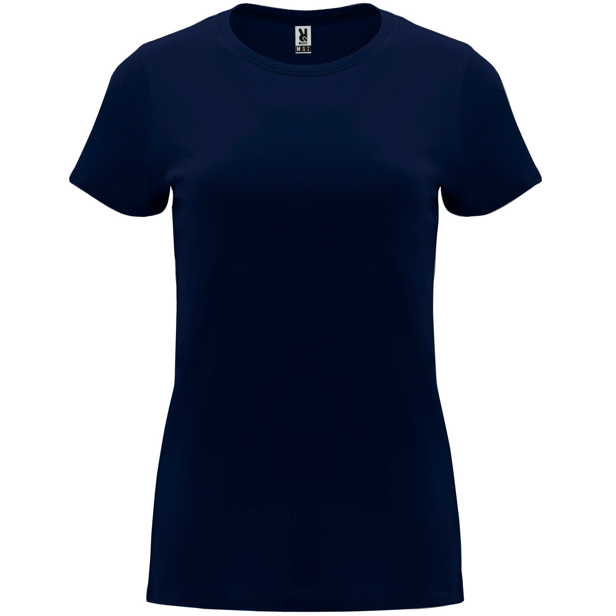 Camiseta de manga corta entallada para mujer. Cuello redondo en canalé 1x1. Cubrecosturas reforzado en cuello.