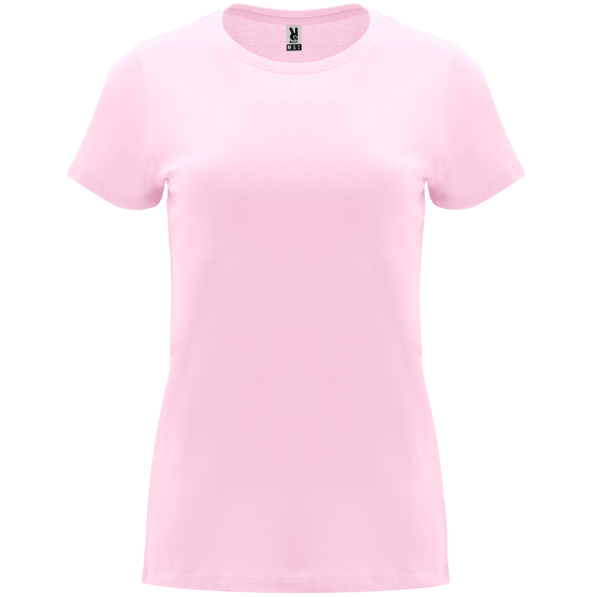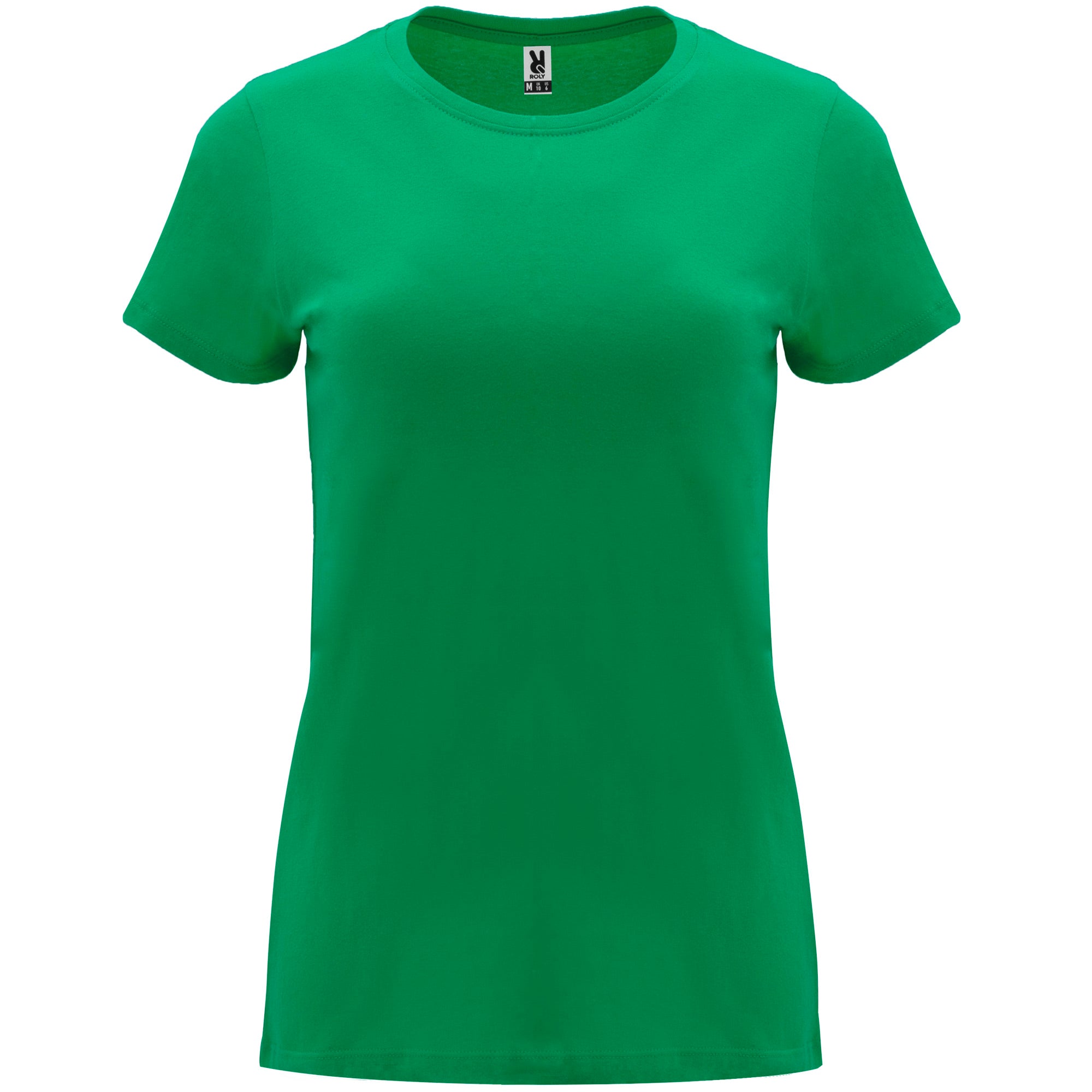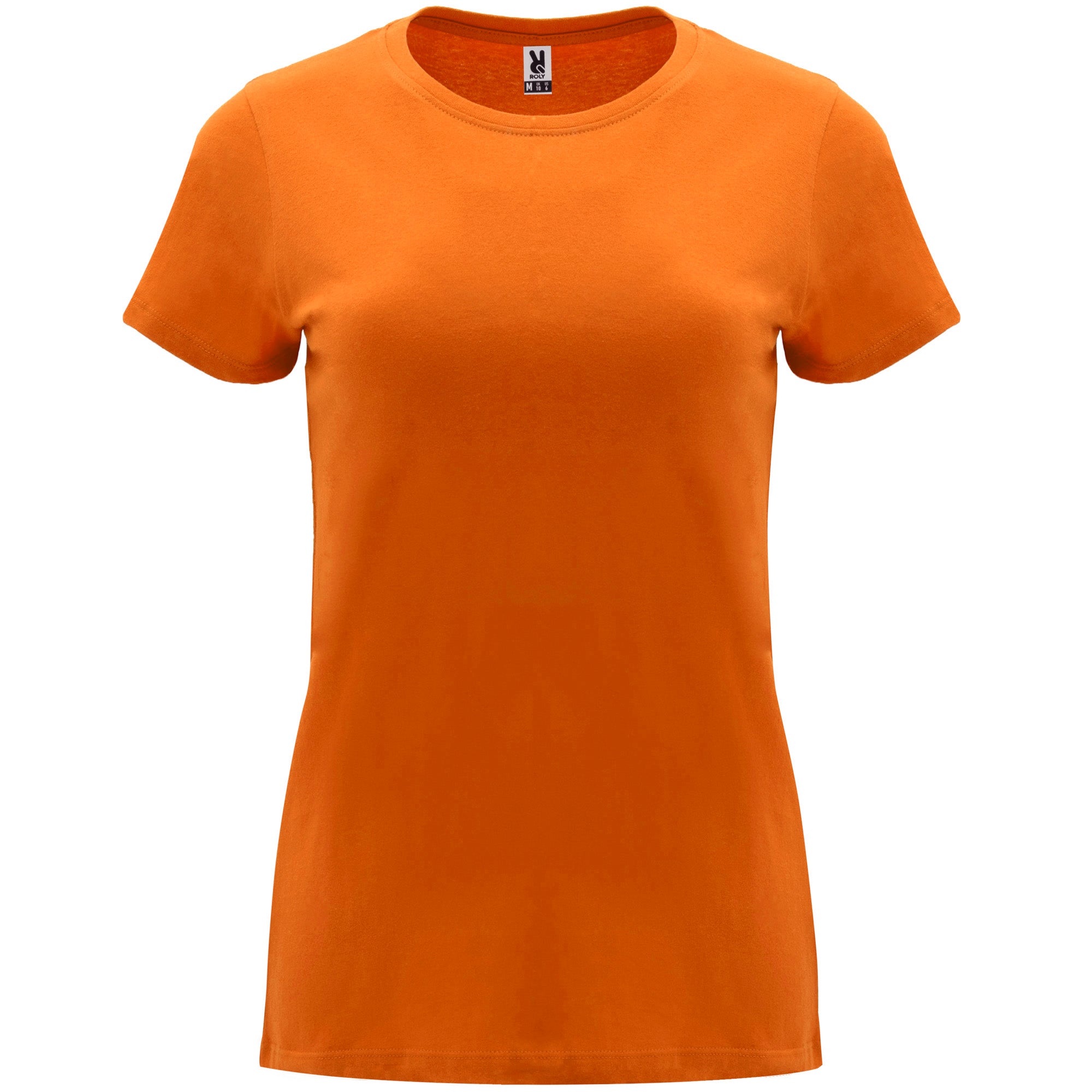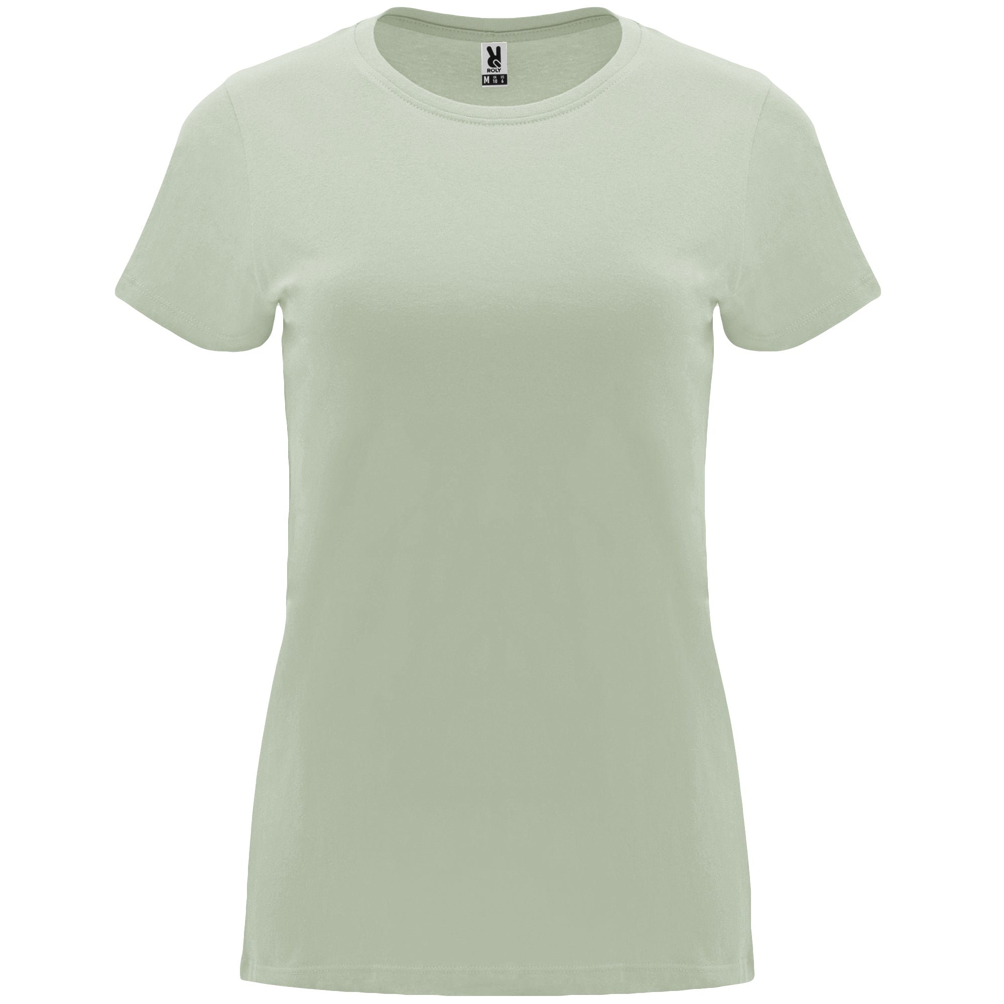 Camiseta de manga corta entallada para mujer. Cuello redondo en canalé 1x1. Cubrecosturas reforzado en cuello.