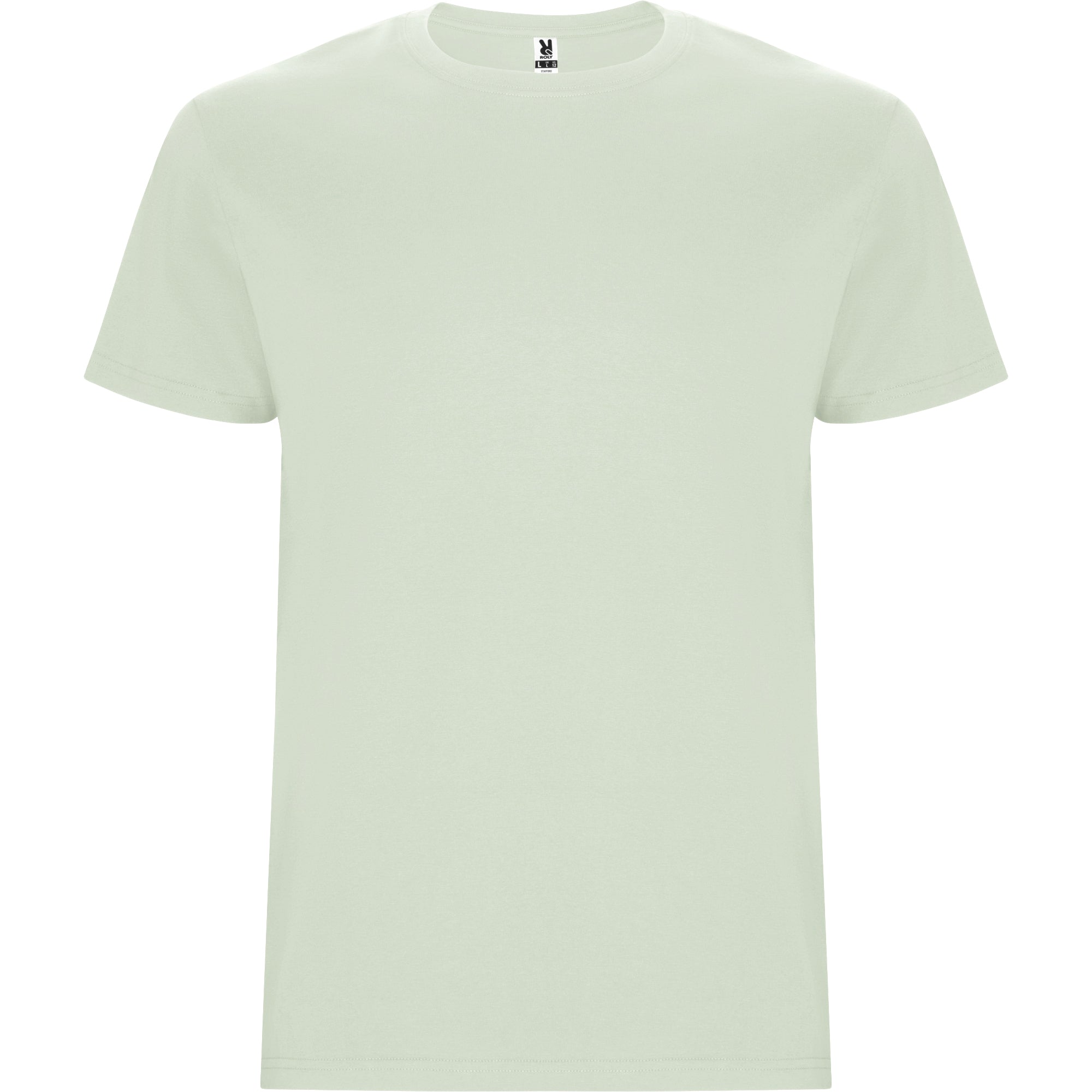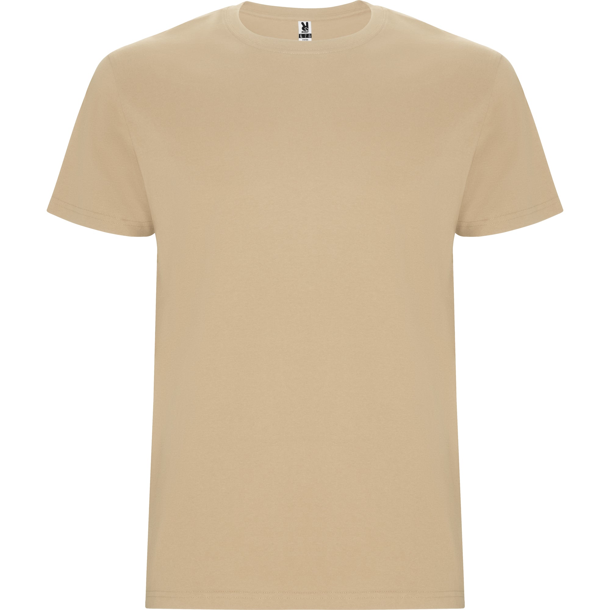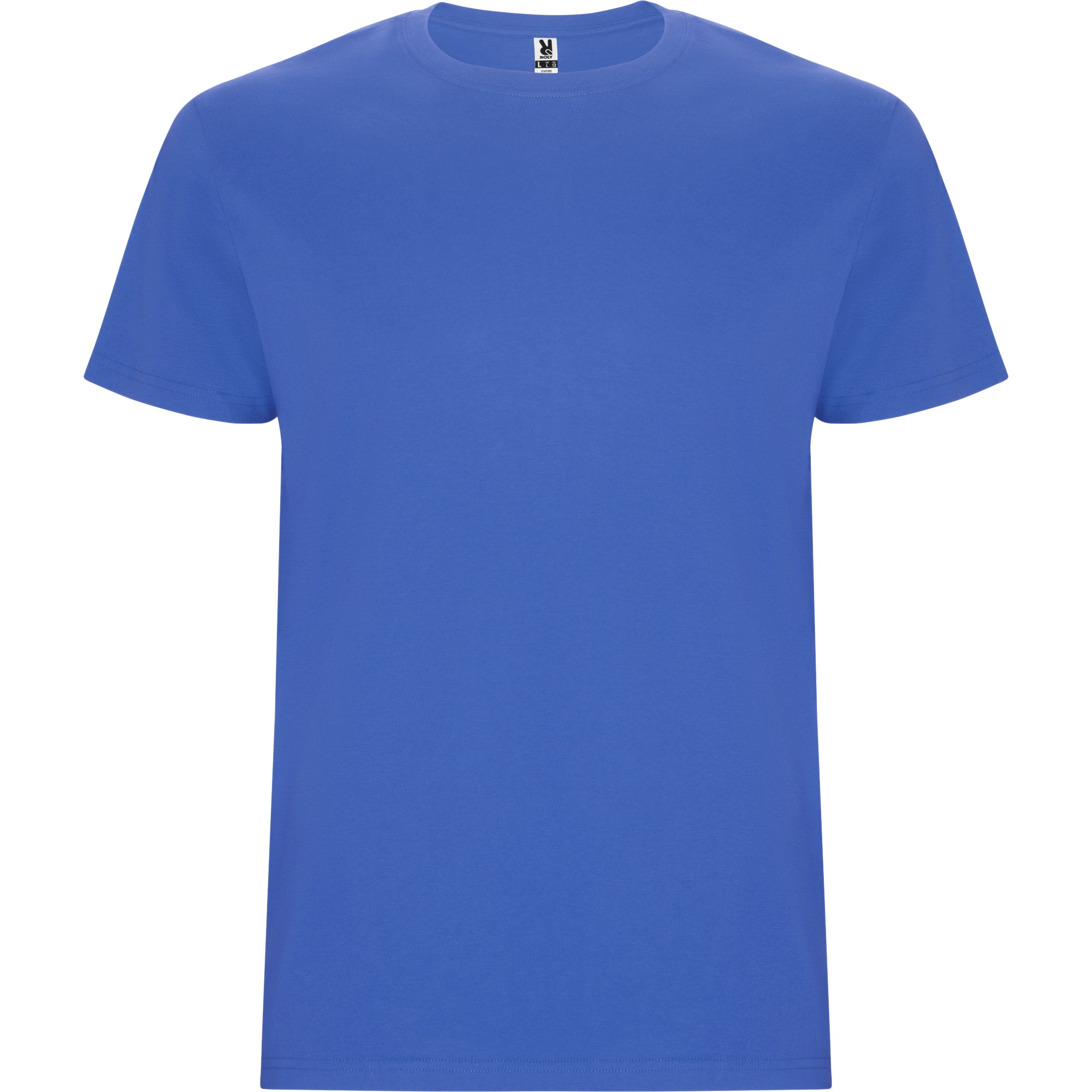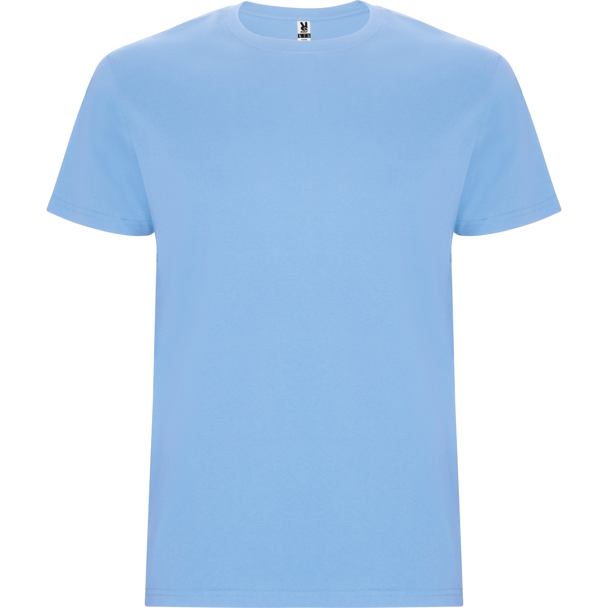 Camiseta tubular de manga corta. Cuello redondo con elastano. Costuras laterales en tallas de niño.