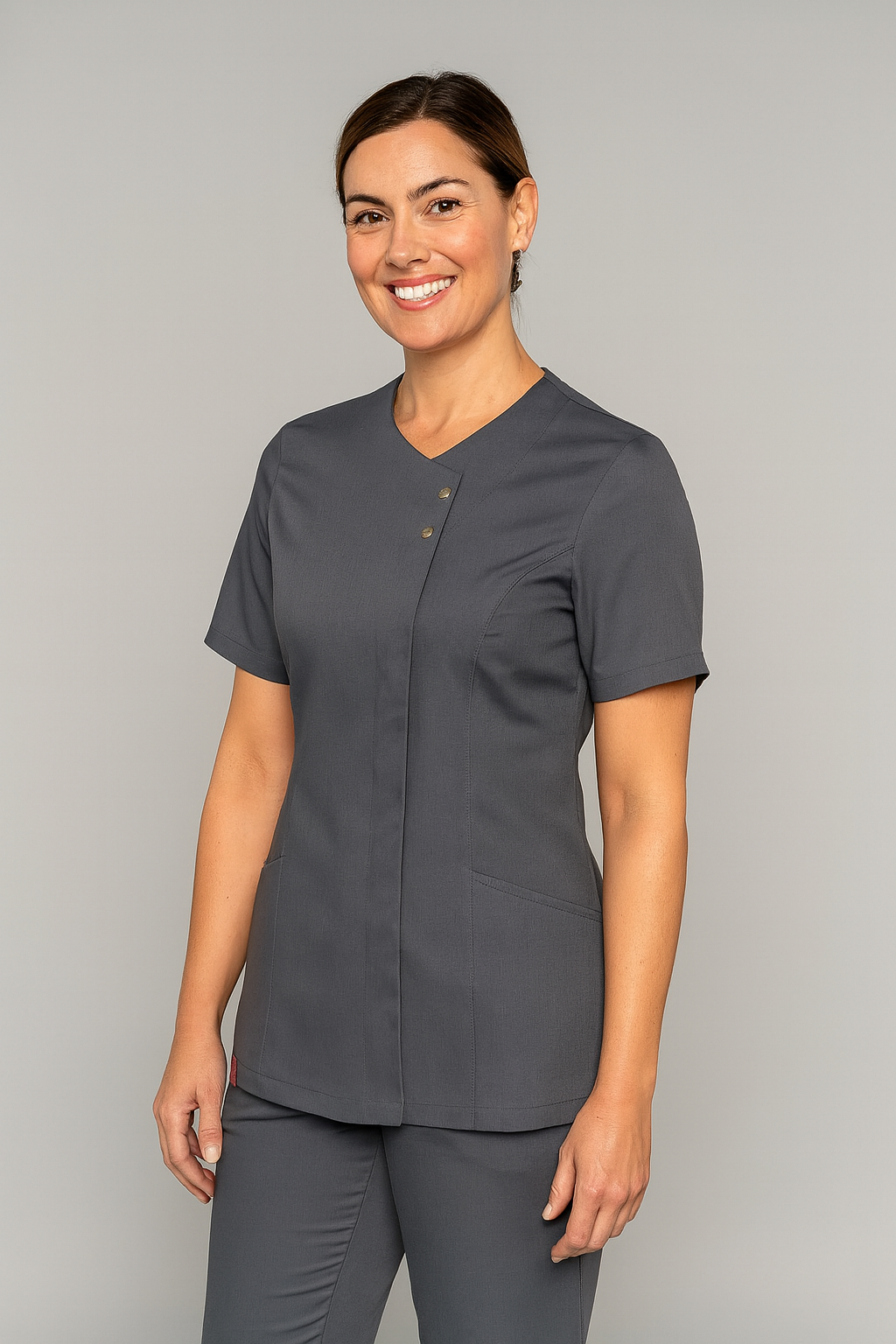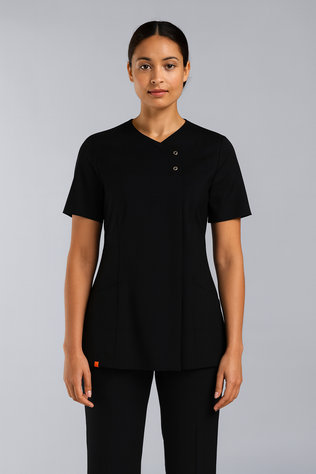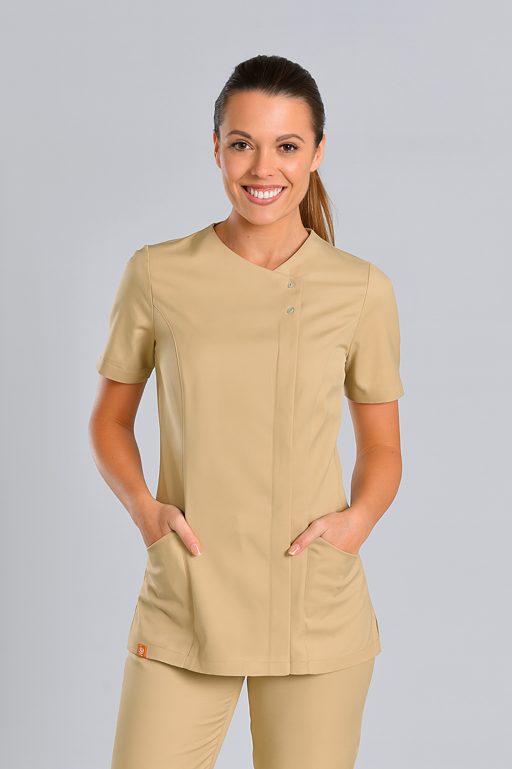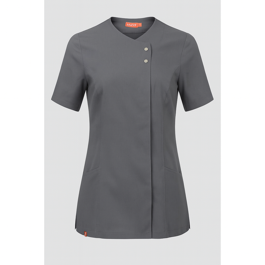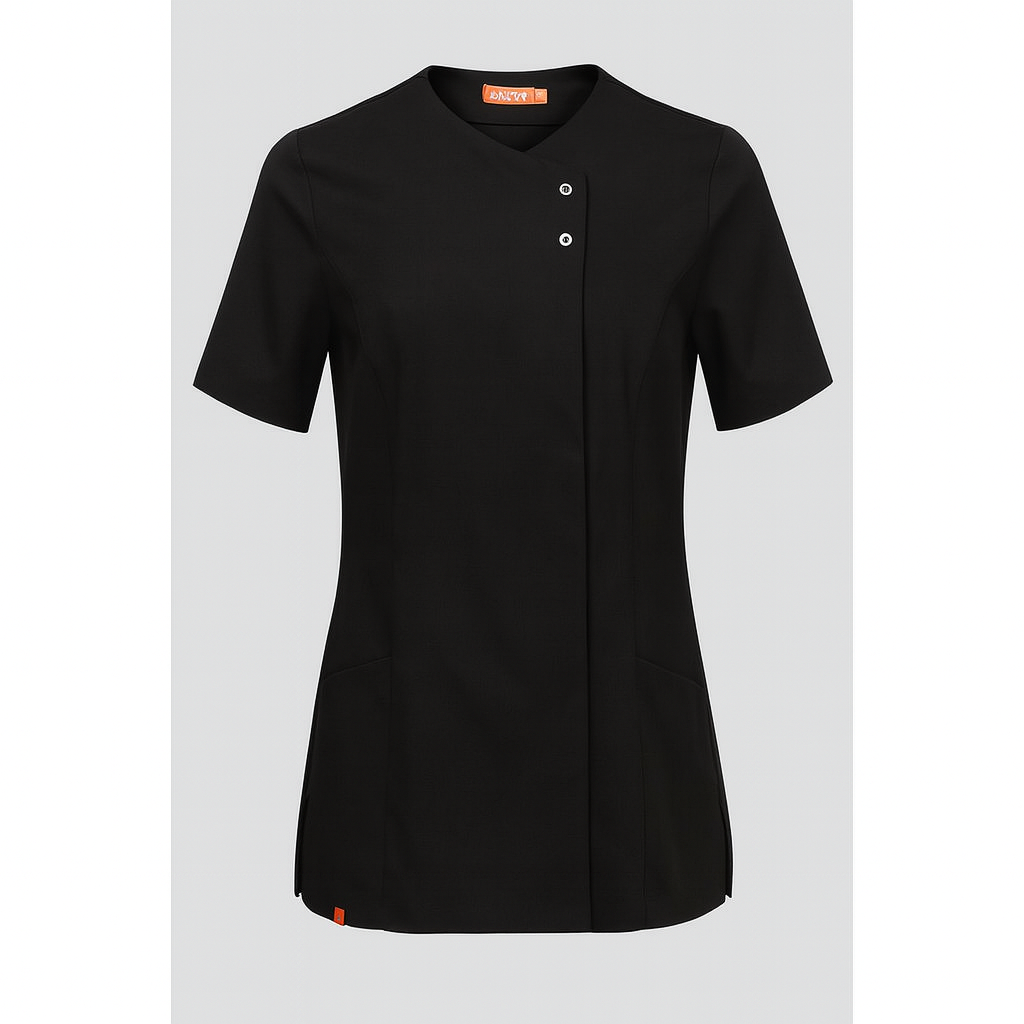 Casaca LUME manga corta de mujer.Escote pico y abertura central con cierre de botones clip. Dos bolsillos en el frontal. Tejido con tratamiento antiolor. 95%Poliéster 5%Elastano - 150 gr./m²