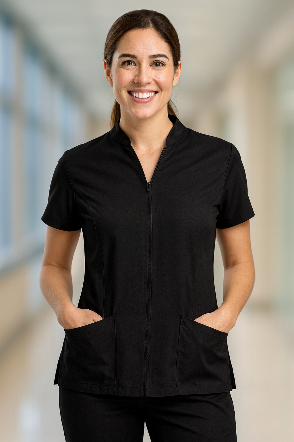 , dos bolsillos, corte entallado y diseño en colores lisos.