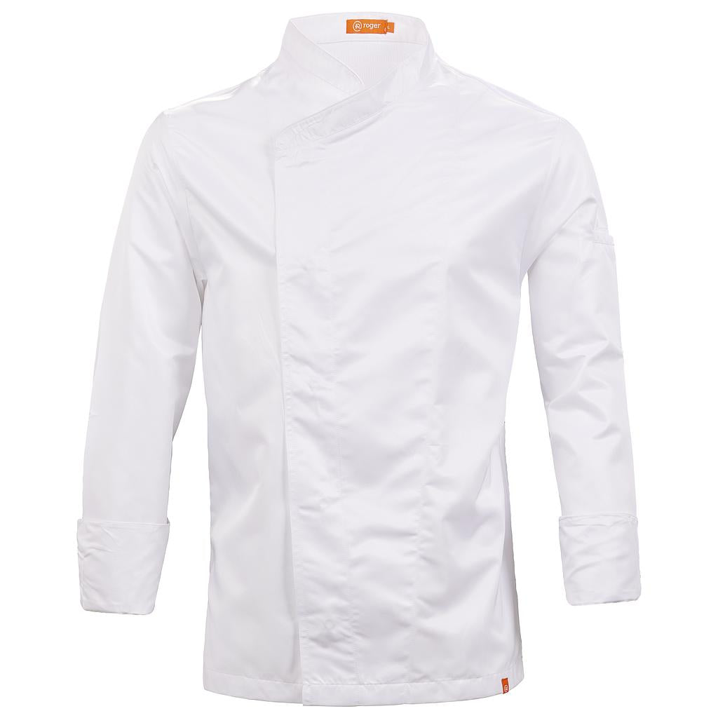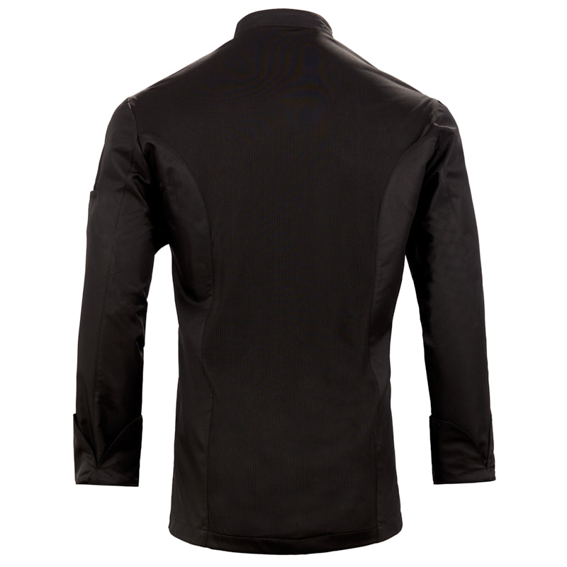 Nuestra chaqueta de cocina de manga larga es una elección sostenible y funcional. Su corte oriental combina estilo y comodidad. Cuenta con un bolsillo en la manga izquierda y acabado repelente al agua, garantizando protección adicional. Además, la espalda en poliéster Coolmax ofrece una excelente transpirabilidad para toda la jornada.