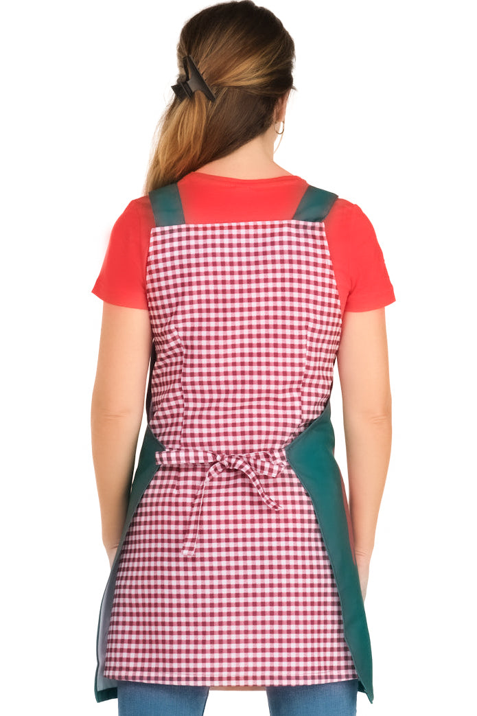 Esta prenda es ajustable y cubre tanto la parte frontal como la espalda del cuerpo. La tira que se anuda en la parte frontal es más estrecha para evitar grosor en parte de la cintura. Los lazos laterales y las pinzas traseras garantizan un ajuste cómodo y personalizado a cada figura para una mayor comodidad durante la ajetreada jornada laboral.