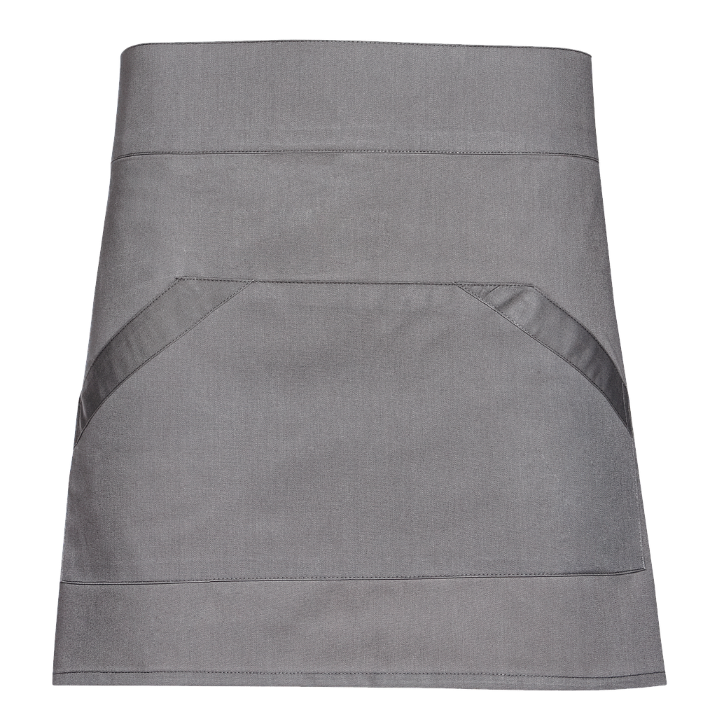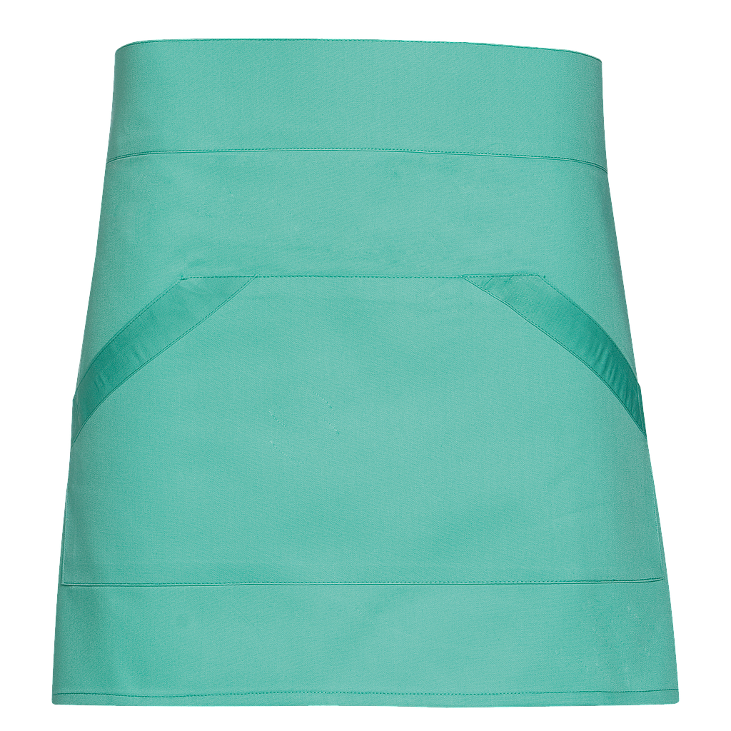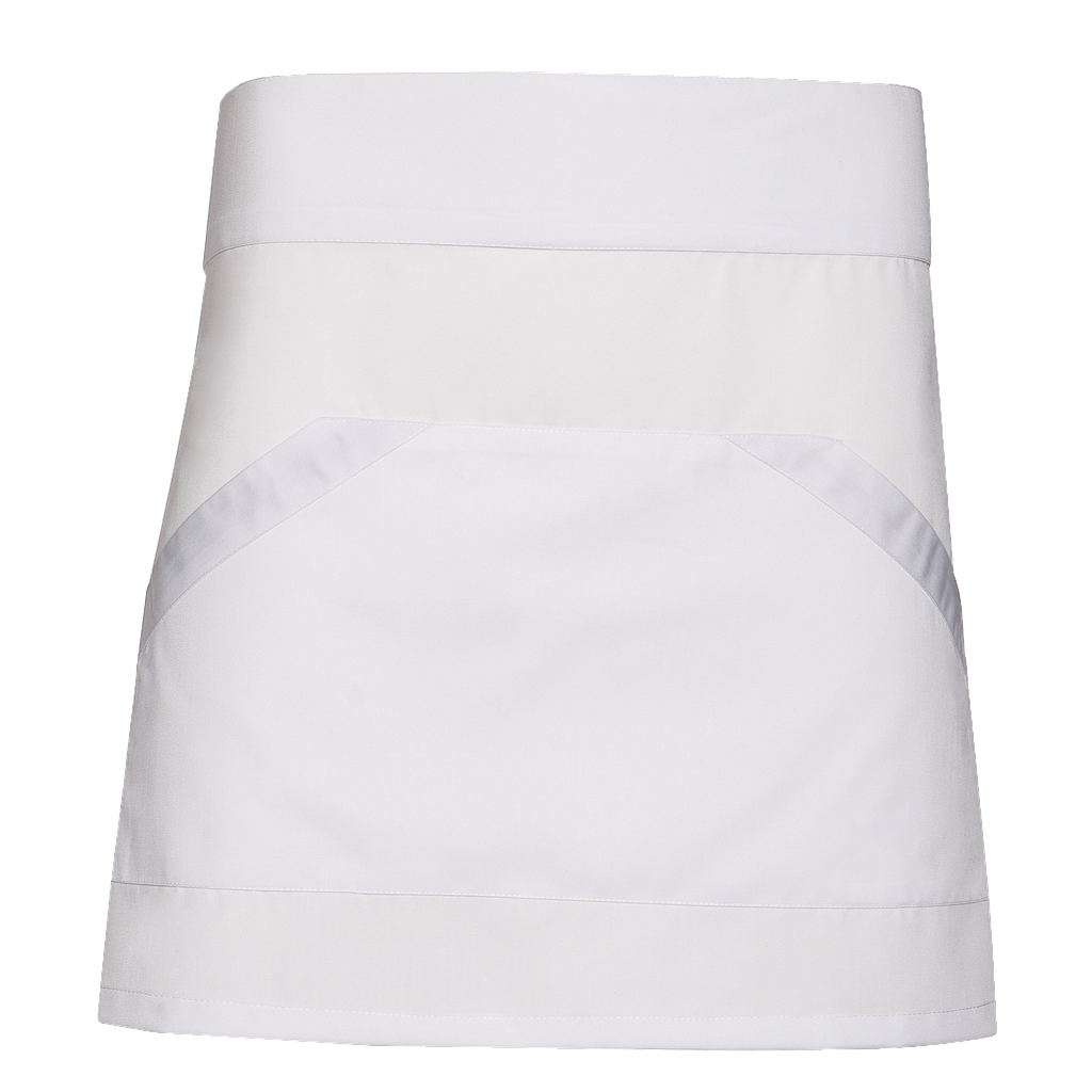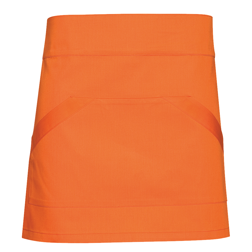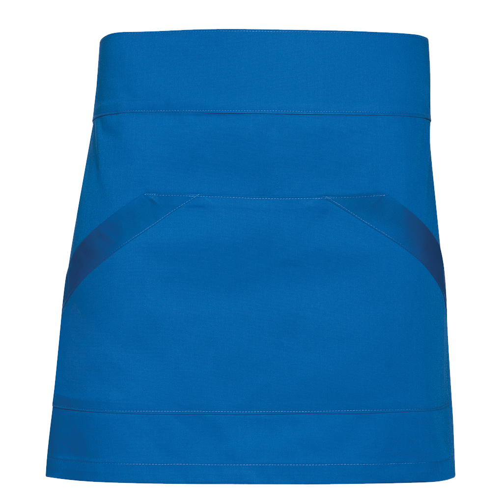 Delantal corto con ajuste en la cintura mediante cinta a tono anudable para un ajuste cómodo y personalizado. Cuenta con un práctico bolsillo central con dos aberturas diagonales para un acceso fácil y rápido. Ideal para profesionales de la cocina, la hostelería y otros sectores que buscan funcionalidad y estilo en su vestimenta laboral. Medidas: 73 x 46,5 cm