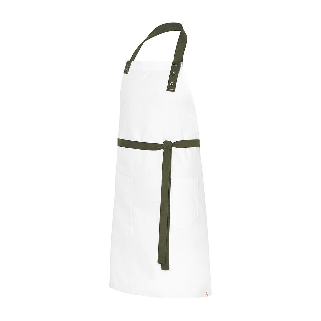 Descubre nuestro delantal peto, con ajuste al cuello y cintura mediante cinta de espiga a contraste, destacando su estilo único. Con dos bolsillos frontales, ofrece practicidad y funcionalidad para llevar tus herramientas esenciales. Ideal para profesionales que buscan comodidad y distinción en su vestimenta laboral.