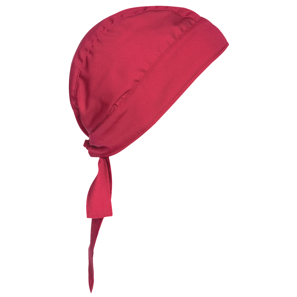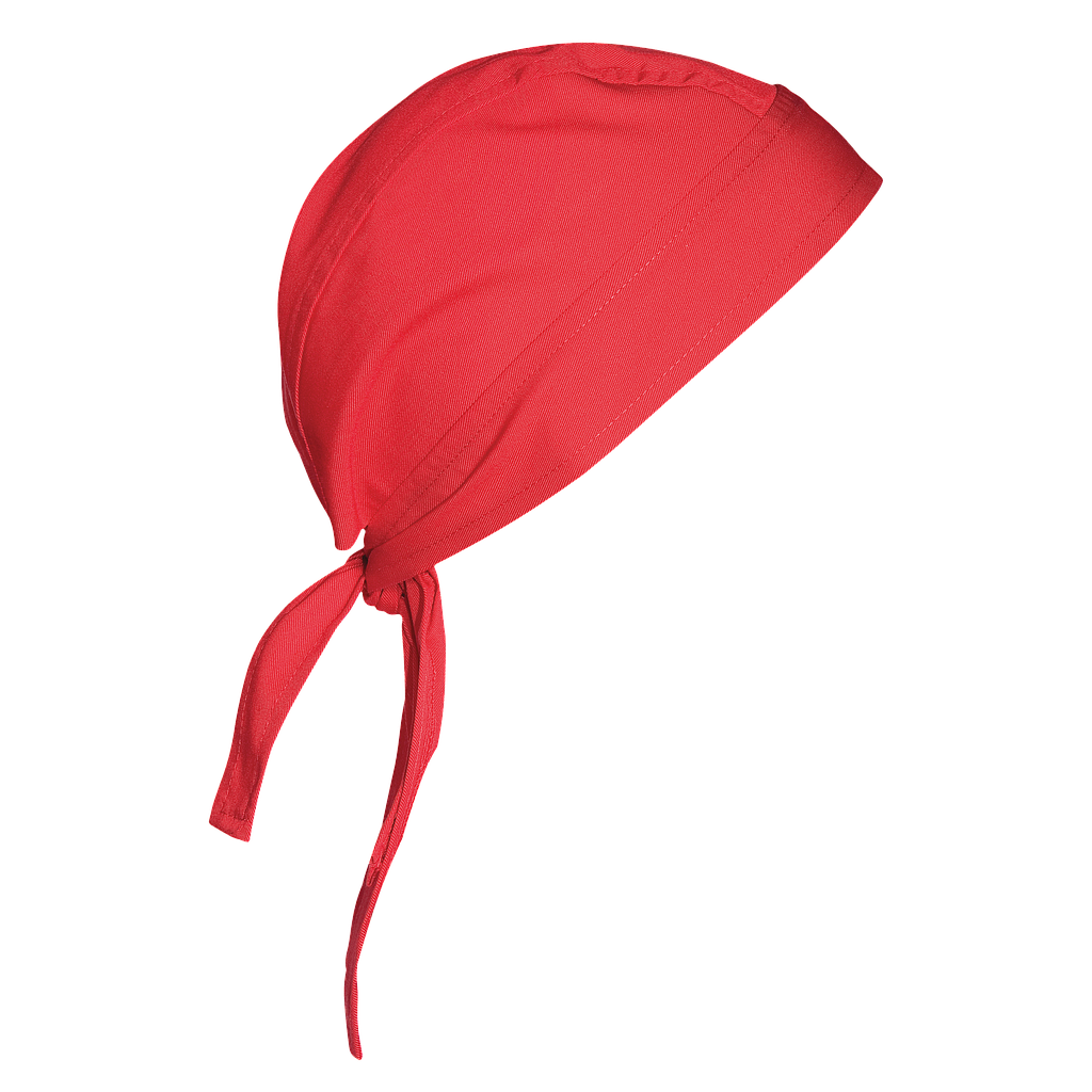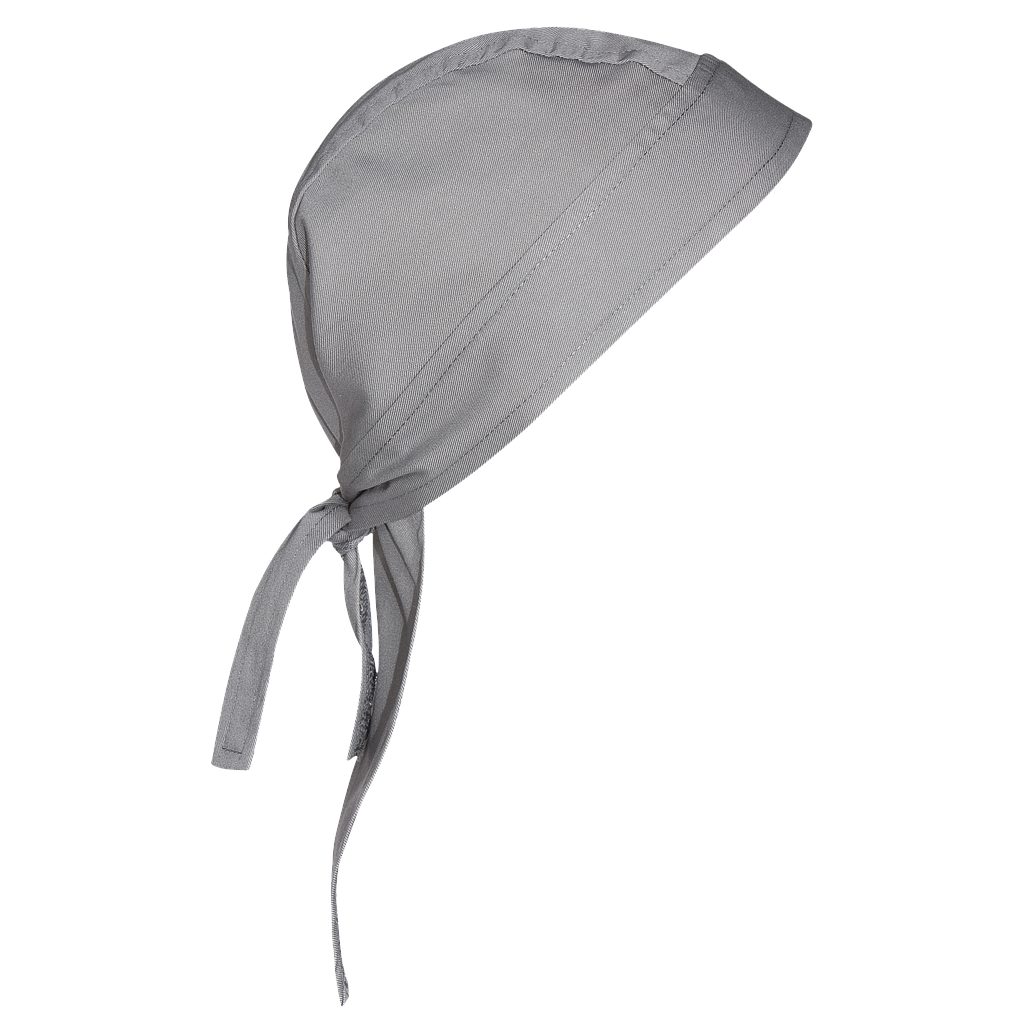 Bandana de cocina con cierre regulable mediante lazada en la nuca para un ajuste cómodo y seguro. Esencial para chefs y trabajadores de la cocina que valoran la higiene y la comodidad en su uniforme laboral. Talla única.