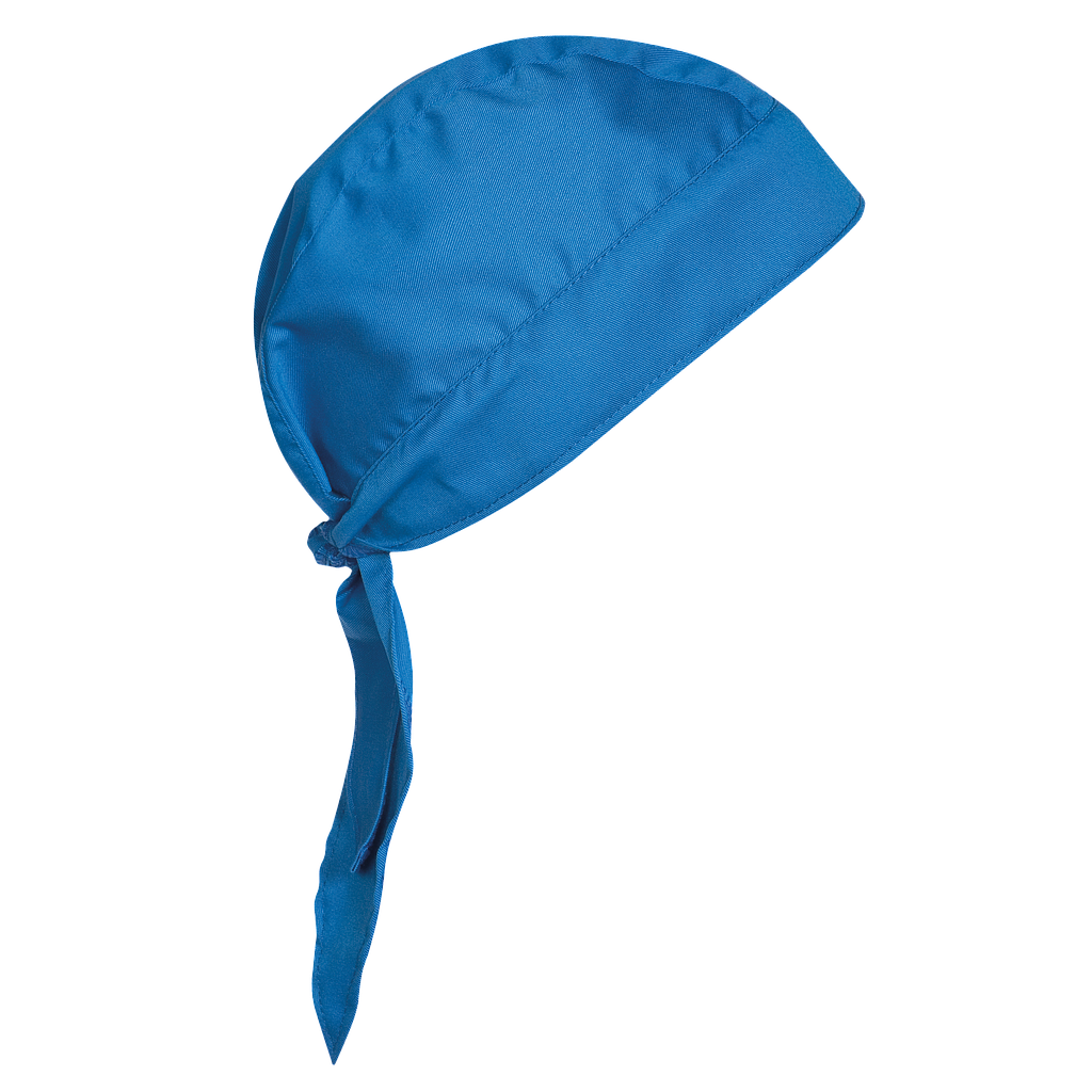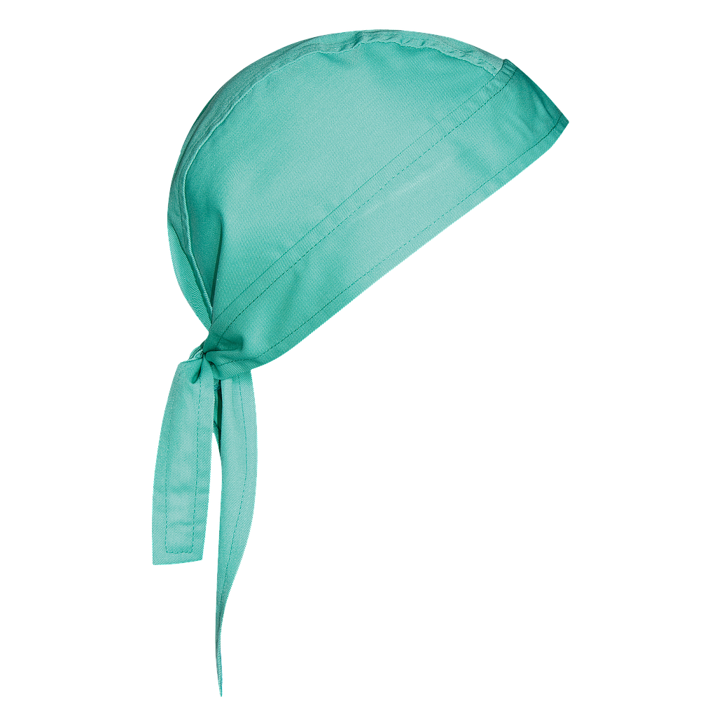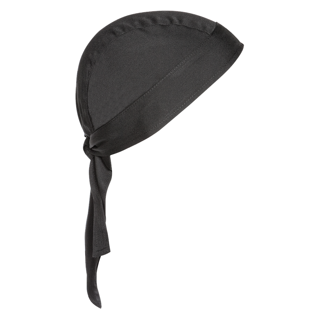 Bandana de cocina con cierre regulable mediante lazada en la nuca para un ajuste cómodo y seguro. Esencial para chefs y trabajadores de la cocina que valoran la higiene y la comodidad en su uniforme laboral. Talla única.