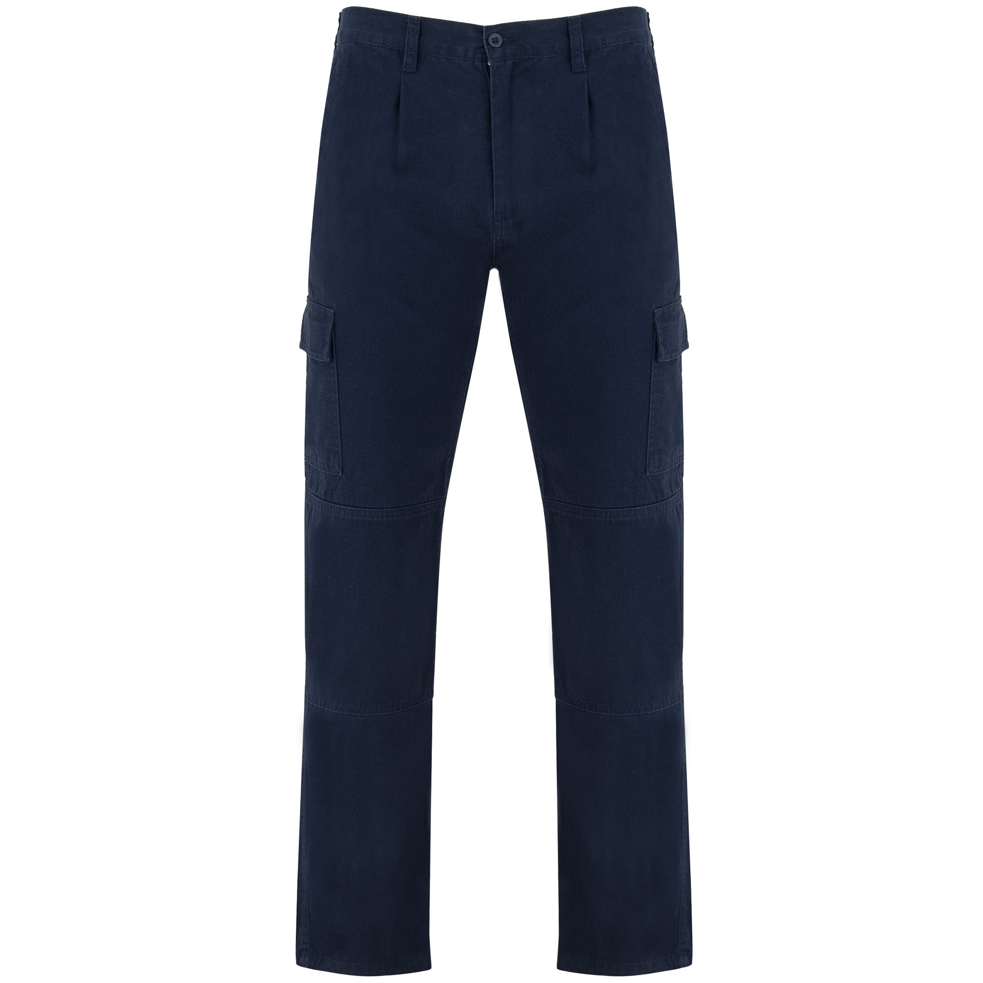 Pantalón largo laboral en tejido de algodón. · Cinturilla ajustable elástica en parte trasera. · Dos bolsillos frontales. · Bolsillo trasero con solapa y cierre de velcro. · Dos bolsillos laterales con solapa y cierre de velcro. · Refuerzo en entrepierna · Doble tejido en rodilleras.