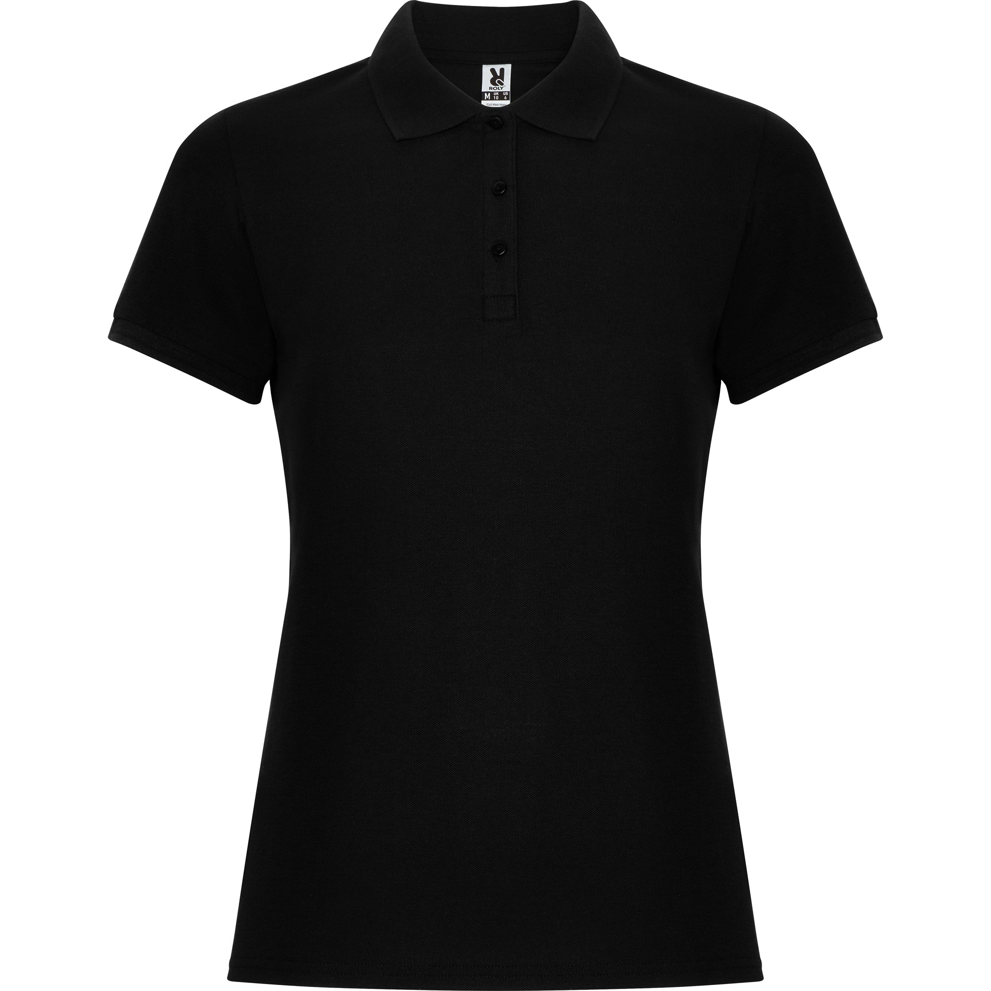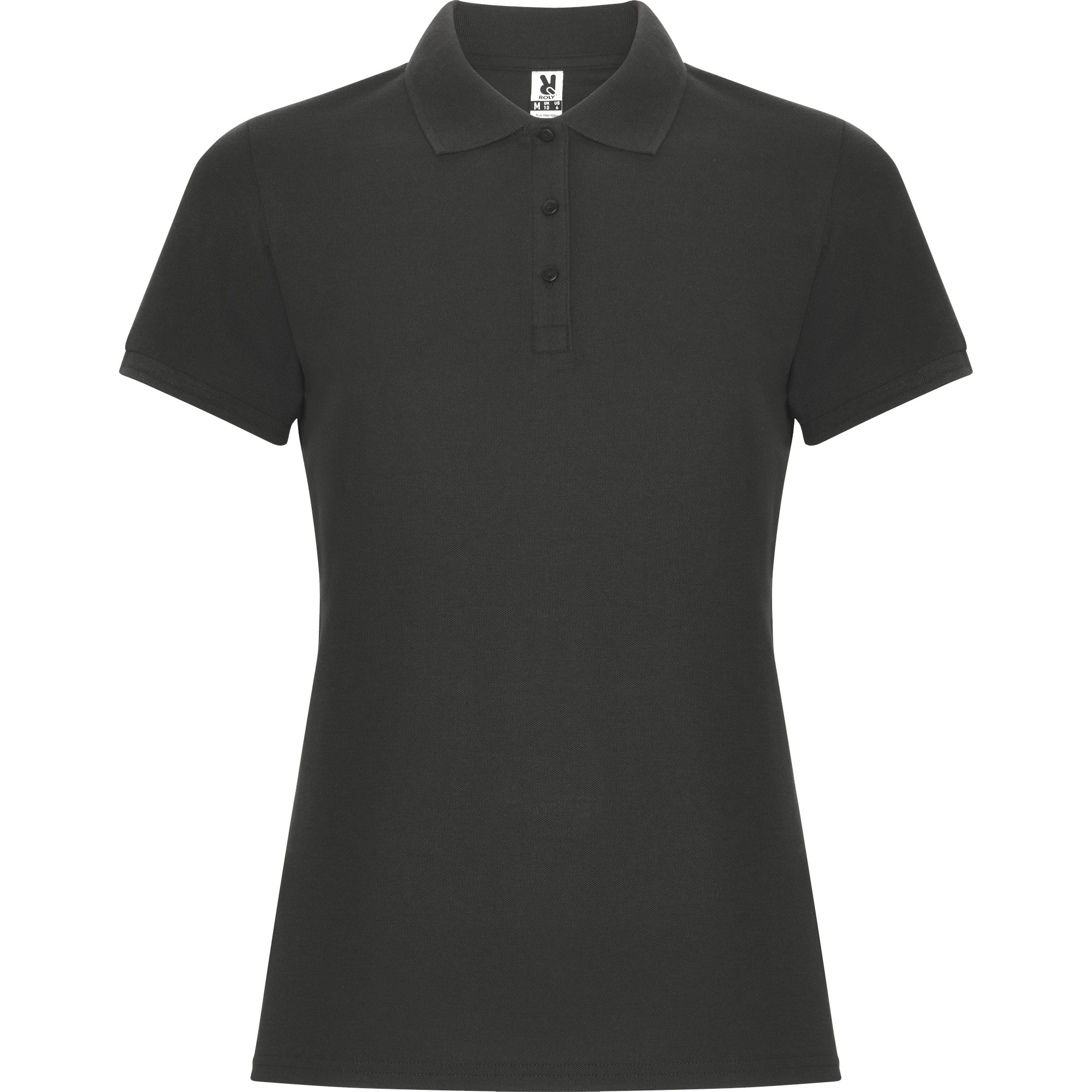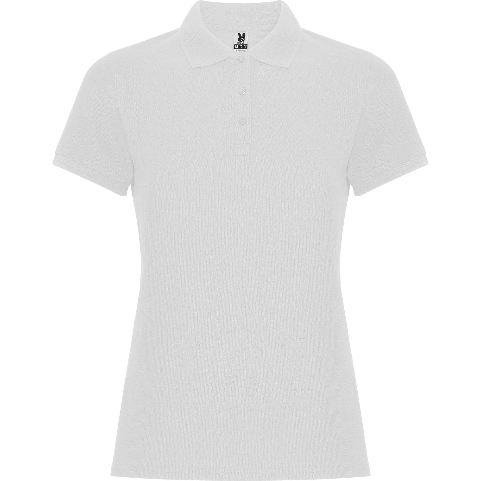 Polo de manga corta para mujer. Cuello y bocamangas en tricotosa. Tapeta fina de 3 botones. Cubrecosturas reforzado en cuello y aperturas laterales.