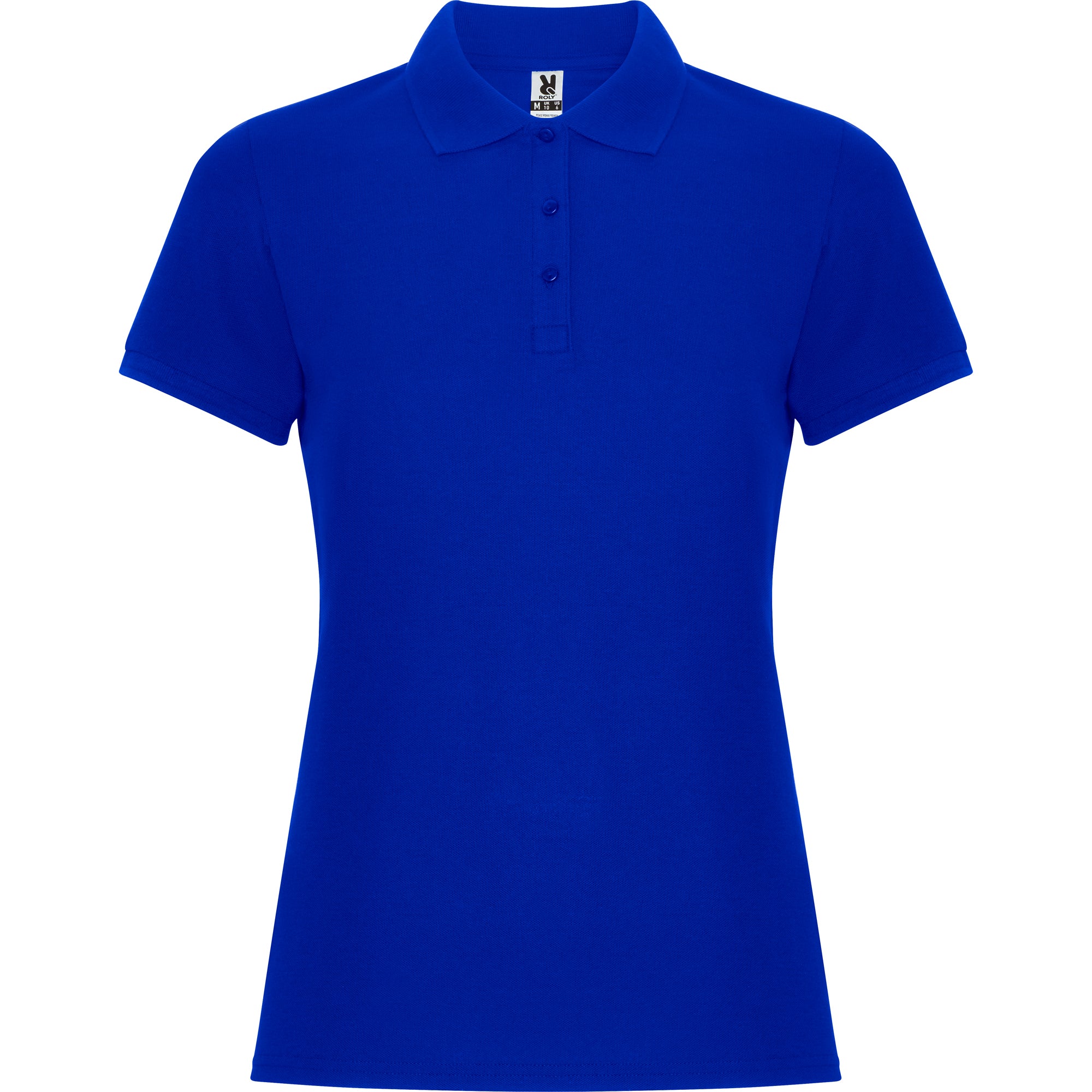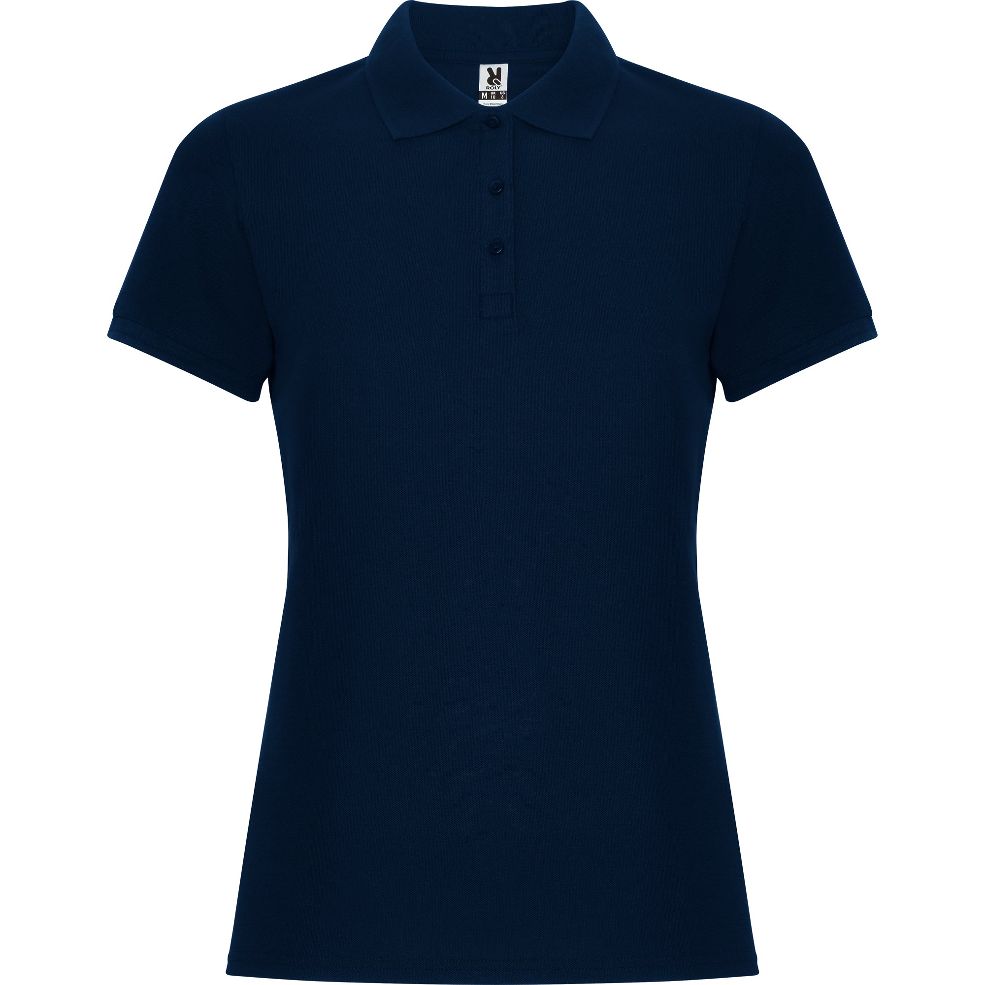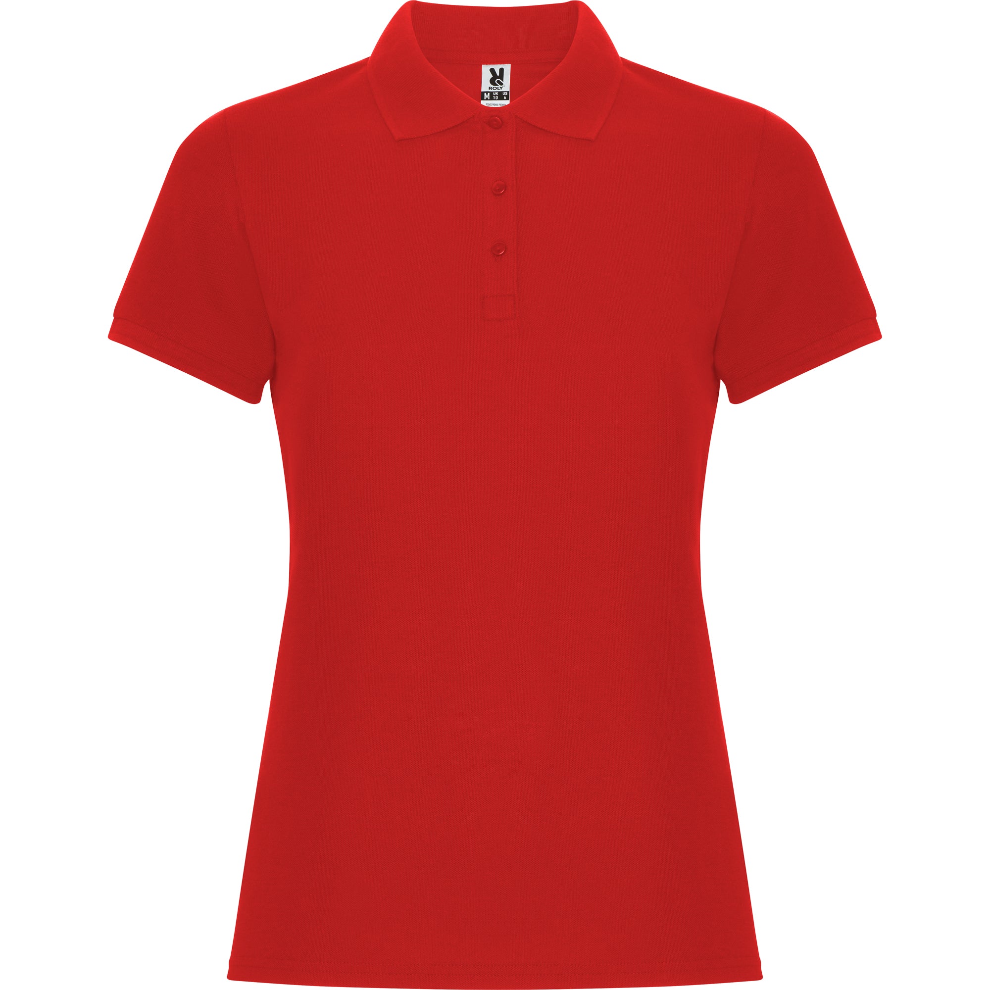 Polo de manga corta para mujer. Cuello y bocamangas en tricotosa. Tapeta fina de 3 botones. Cubrecosturas reforzado en cuello y aperturas laterales.
