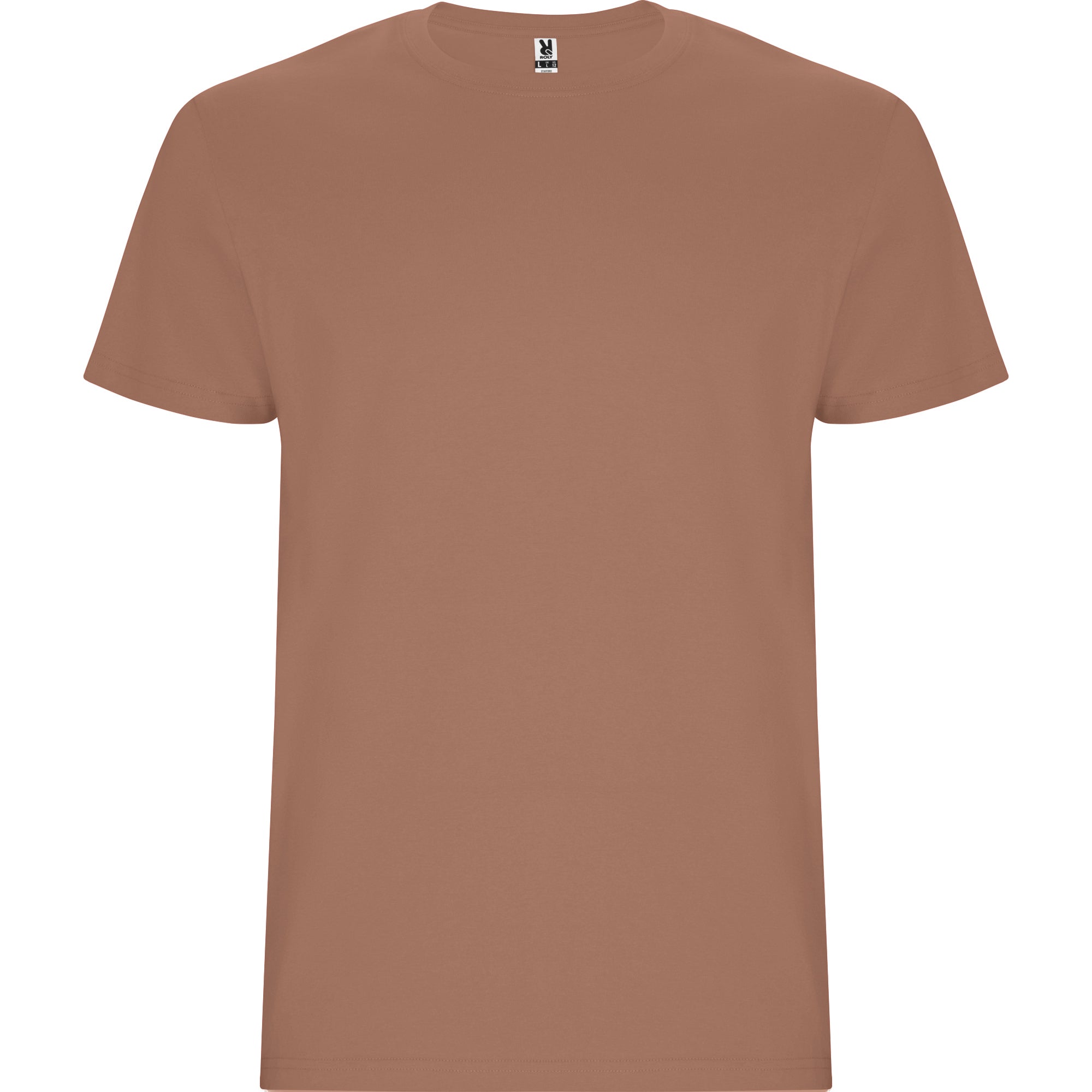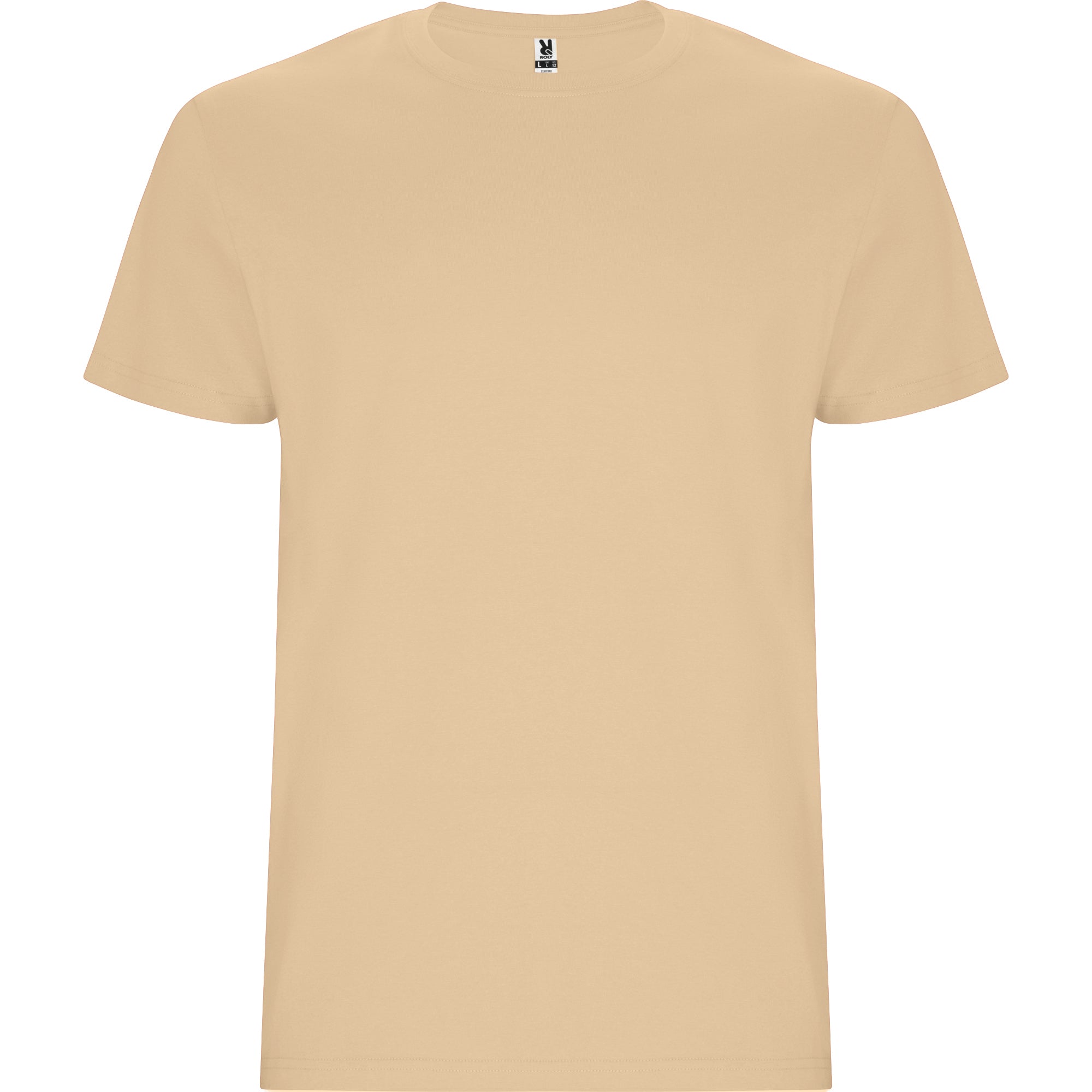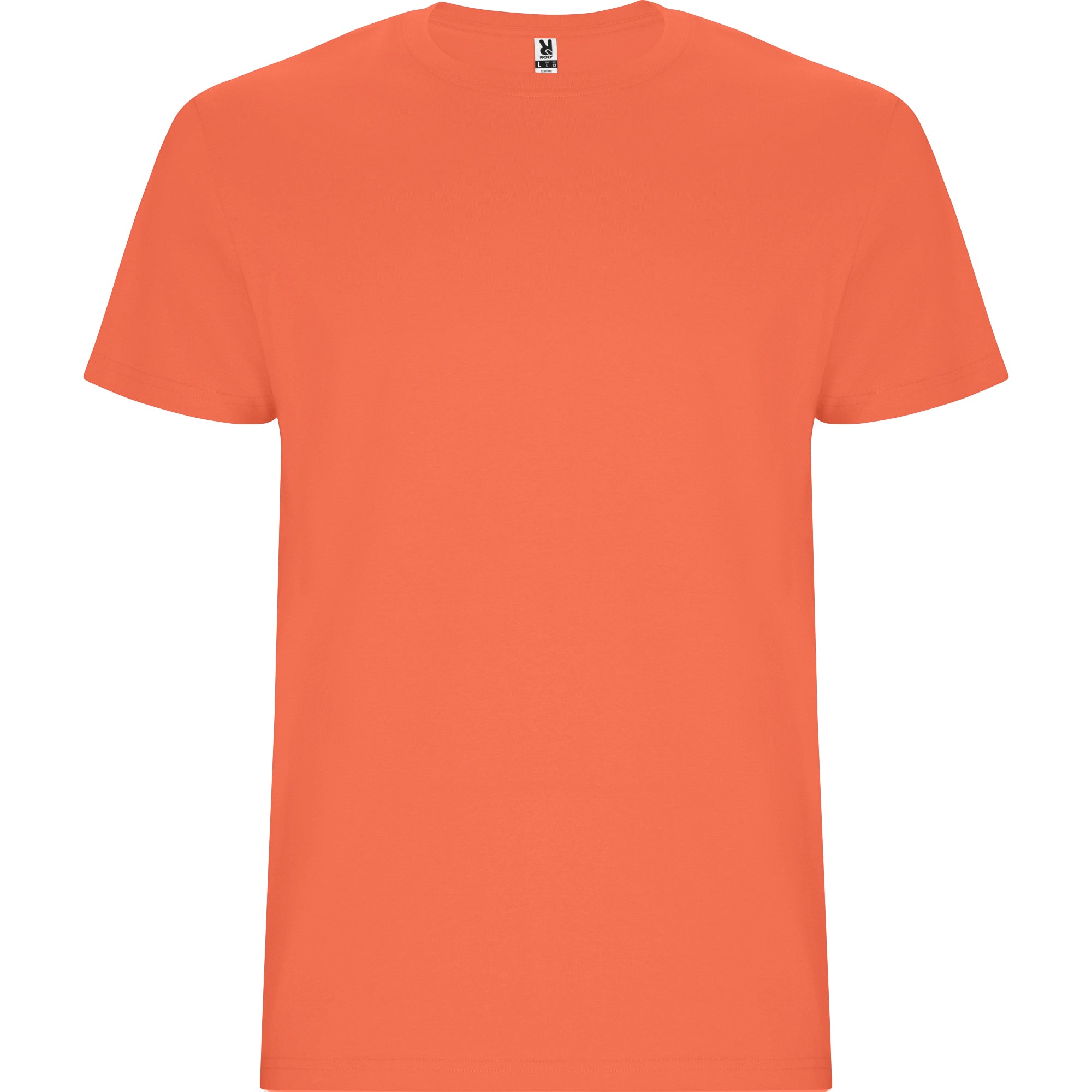 Camiseta tubular de manga corta. Cuello redondo con elastano. Costuras laterales en tallas de niño.