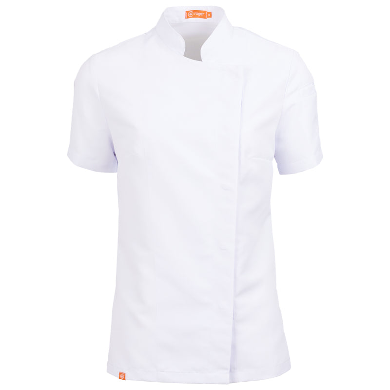 La chaqueta de cocina para mujer de manga corta presenta un cierre con botonadura oculta cruzada para un aspecto elegante. Con un práctico bolsillo de vivo en la manga izquierda y una espalda en 100% Poliéster Coolmax Transpirable para una máxima comodidad y transpirabilidad.