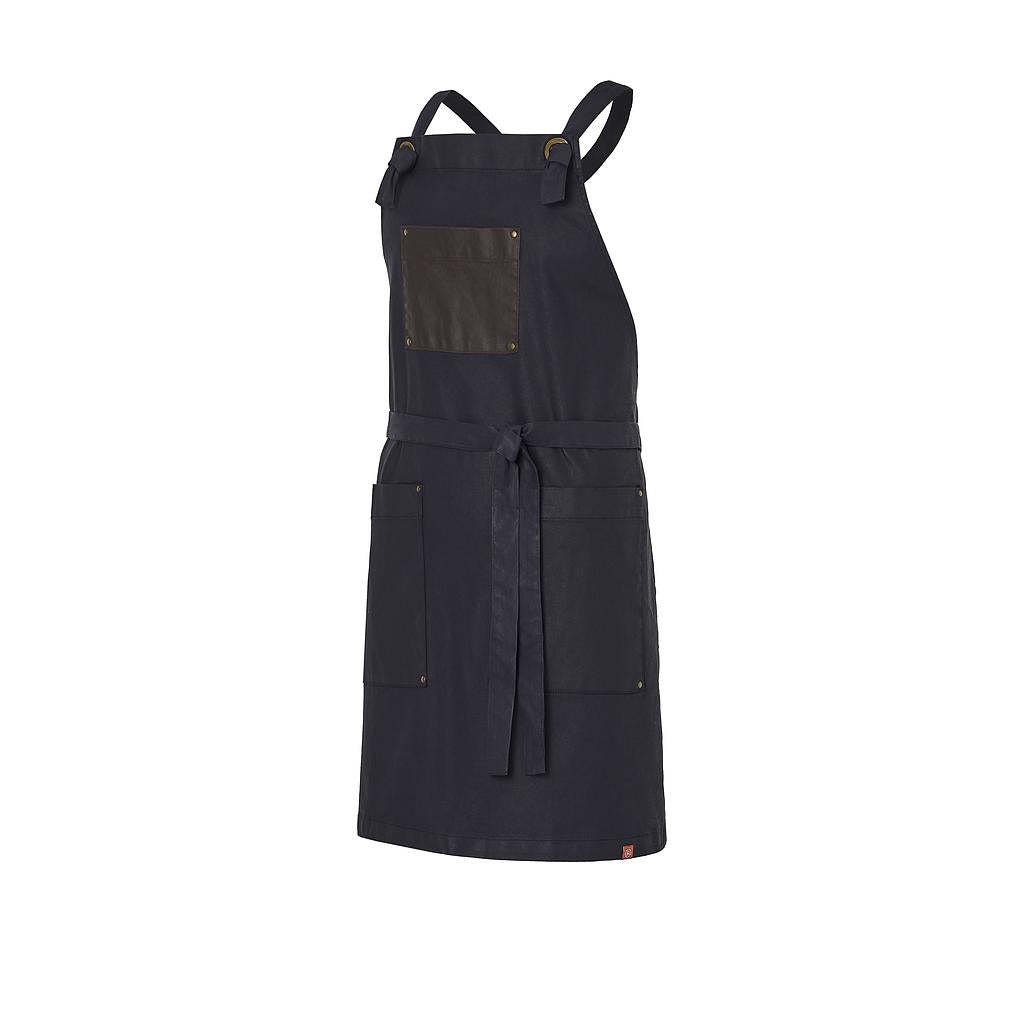El delantal peto efecto encerado ofrece un estilo distinguido y funcionalidad. Con tirantes cruzados y ajuste cintura mediante cinta anudable, garantiza un ajuste seguro y cómodo. Sus detalles en polipiel en el pecho y bolsillos añaden un toque de elegancia, mientras que el bolsillo en contraste resalta su diseño.